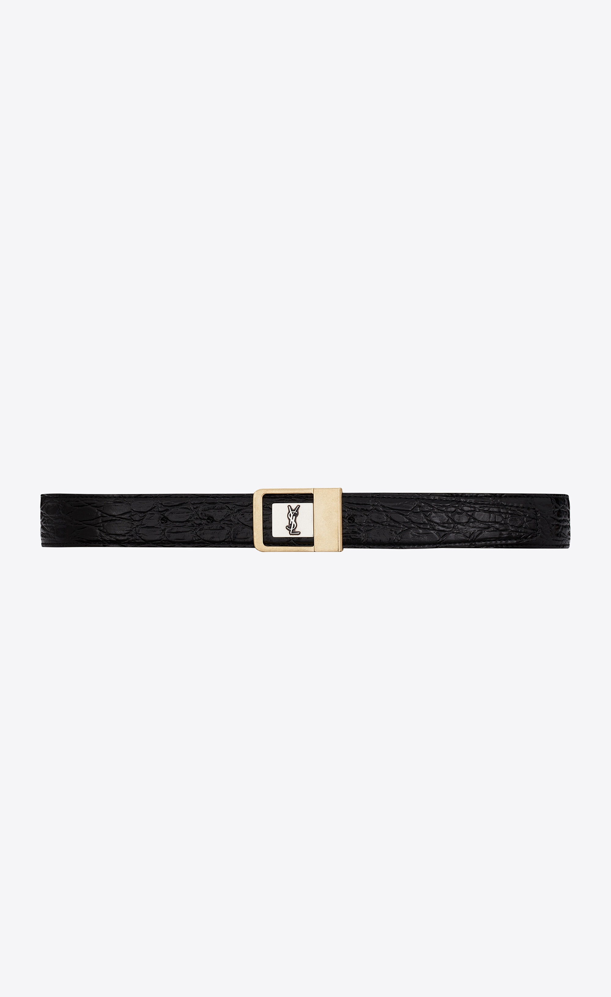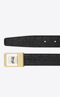 female buckle belt in crocodile-embossed leather