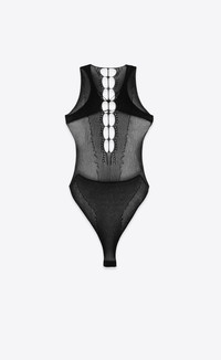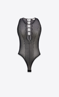 SHEER FISHNET BODYSUIT MADE WITH CERTIFIED VISCOSE, FEATURING A PLUNGING OPENWORK NECKLINE AND OPEN RACERBACK. - 60% VISCOSE, 29% POLYESTER, 10% POLYAMIDE, 1% ELASTHANNE - CERTIFIED VISCOSE - SNAP-BUTTON CLOSURE BETWEEN THE LEGS - PLUNGING OPENWORK NECKLINE - DUE TO HYGIENE-RELATED REASONS, THIS PIECE MAY NOT BE RETURNED - STYLE ID 813584534 - MADE IN ITALY
