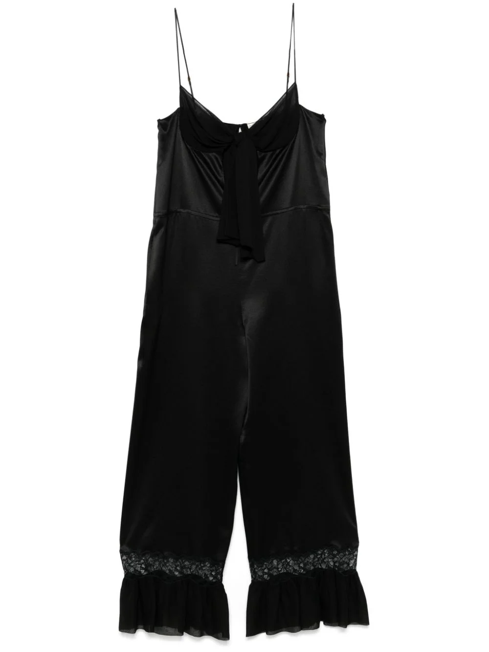bow-detail jumpsuit Highlights - Black - Single rear button fastening - Two side slash pockets Made in Italy Composition Polyamide 72%, Viscose 28% Outer: Silk 100% SIZE & FIT Measurement INSIDE LEG 27.99 in(71.1 cm) BACK RISE 14.48 in(36.8 cm) HIPS 40.98 in(104.1 cm) Hem Width 22 in(55.9 cm) WAIST 35.98 in(91.4 cm) BUST 34.01 in(86.4 cm)
