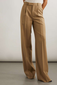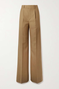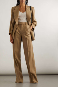 EDITORS'NOTES Living up to the brand's storied reputation, SAINT LAURENT's tailoring remains iconic in the hands of Anthony Vaccarello. Cut from wool-twill that'll last even longer if you dry clean it sparingly, these chic pants have exaggerated flared legs. Wear yours with tie-detailed blouses, classic stripes or the full suit with the matching blazer. SIZE & FIT - Fits true to size, take your normal size - High-rise, cut for a straight-leg fit - Slightly long in length - Mid-weight, non-stretchy fabric - Model is 177cm/ 5'10" and is wearing a FR 36 DETAILS & CARE - Beige wool-twill - Concealed button, hook and zip fastening at front - 100% wool; lining1: 100% silk; lining2: 97% cotton, 3% elastane - Dry clean