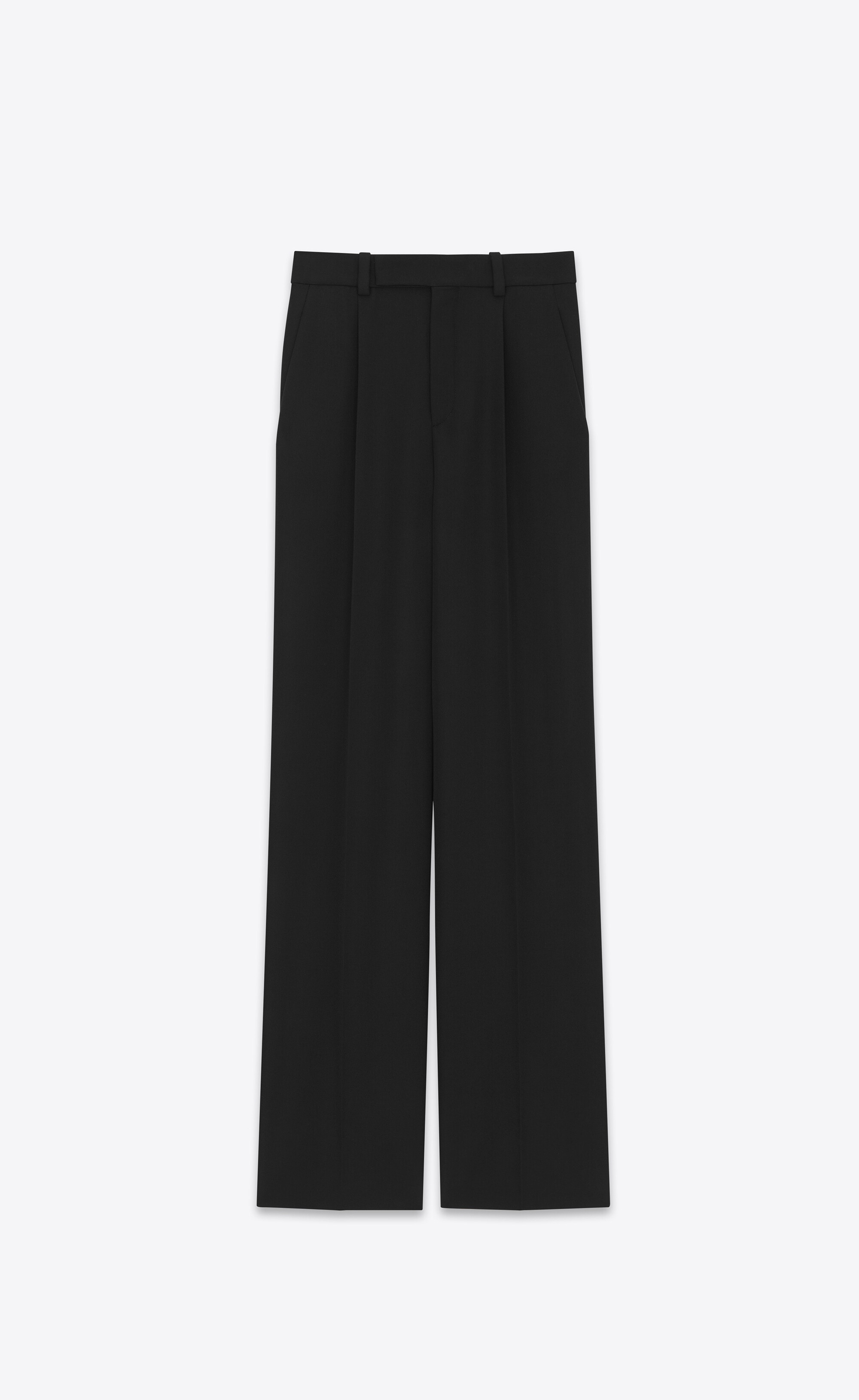 HIGH-WAISTED PANTS MADE WITH RESPONSIBLE WOOL, FEATURING FRONT PLEATS, FLARED LEGS AND SIDE POCKETS. - 100% WOOL - RESPONSIBLE WOOL - SILK LINING - CONCEALED ZIP AND BUTTON CLOSURE - TWO SLIT POCKETS AT THE SIDES, TWO JETTED POCKETS AT THE BACK - WAISTBAND WITH BELT LOOPS - STYLE ID 736713Y7E611000 - MADE IN ITALY