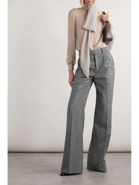 EDITORS'NOTES SAINT LAURENT's tailored pants are woven with classic houndstooth checks in contrasting black threads. They're made from wool, so they'll hold their shape, and they have sharp pleats tracing the front. Tuck a chiffon blouse into the high-rise waist for a classic Parisian look. SIZE & FIT - Fits true to size, take your normal size - High-rise, intended for a straight-leg fit - Mid-weight, non-stretchy stretchy fabric - Model is 177cm/ 5'10" and is wearing a FR 34 DETAILS & CARE - Gray and black wool - Concealed hook, button and zip fastening at front - 100% wool; lining1: 100% silk; lining2: 97% cotton, 3% elastane Small to size. See Size & Fit notes.