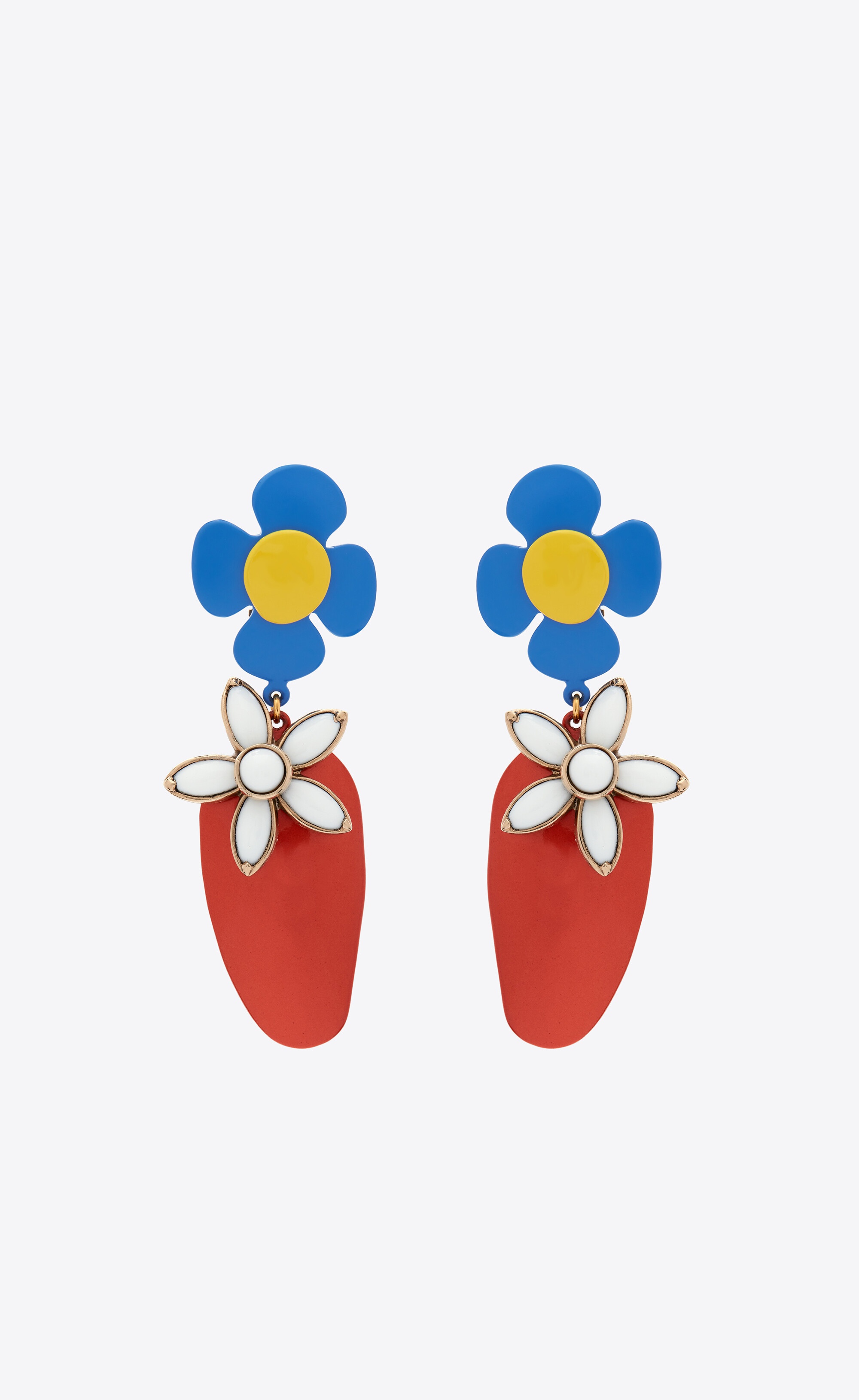 PAIR OF CLIP-ON EARRINGS FEATURING A FLOWER STUD AND A FLOWER AND STRAWBERRY PENDANT, FOR UNPIERCED EARS. - 50% BRASS, 50% ENAMEL - DIMENSIONS: 10,5 CM / 4.1 X 4.1 INCHES - CLIP-ON CLOSURE - LENGTH: 10.5CM - STYLE ID 809658950 - MADE IN FRANCE