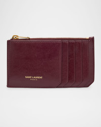 - Saint Laurent "Fragments" card case in calfskin leather, detailed with logo lettering - Zip top compartment - Five card slots - Approx. 2.9"H x 5.1"W x 0.3"D - Made in Italy
