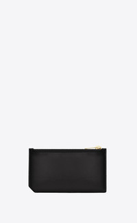 SAINT LAURENT ZIP CASE WITH FRONT CARD SLOTS AND EMBOSSED SAINT LAURENT SIGNATURE. - 100% CALFSKIN LEATHER - DIMENSIONS: 13 X 8 X 0,5 CM / 5.1 X 3.1 X 0.1 INCHES - 5 CARD SLOTS - 1 COMPARTMENT WITH ZIP TOP - STYLE ID 809325015 - MADE IN ITALY