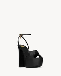 PLATFORM SANDALS WITH A TWISTED CRISSCROSS TOE, BLOCK HEEL, AND CASSANDRE ANKLE CHARM. - LEATHER SOLE - ROUND SAINT LAURENT-ENGRAVED METAL PLAQUE ON THE INSOLE - ADJUSTABLE ANKLE STRAP - TOTAL HEEL HEIGHT: 13.9 CM / 5.4 INCHES - ARCH HEIGHT: 8.5 CM / 3.3 INCHES - PLATFORM HEIGHT: 5.4 CM / 2.1 INCHES - CALFSKIN, BRASS - STYLE ID 869730AAEHF1000 - MADE IN ITALY