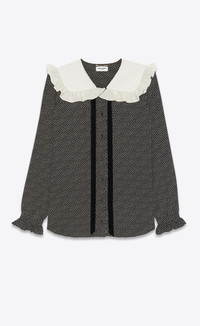 LONG-SLEEVE BLOUSE FEATURING A FRILLED CONTRASTING YOKE WITH A RIBBON TIE, FRONT BUTTON CLOSURE AND FRILLED CUFFS. - 100% SILK - BUTTON PLACKET WITH BOW - FRILLED YOKE - FRILLED CUFFS - STYLE ID 660883Y5D121095 - MADE IN ITALY