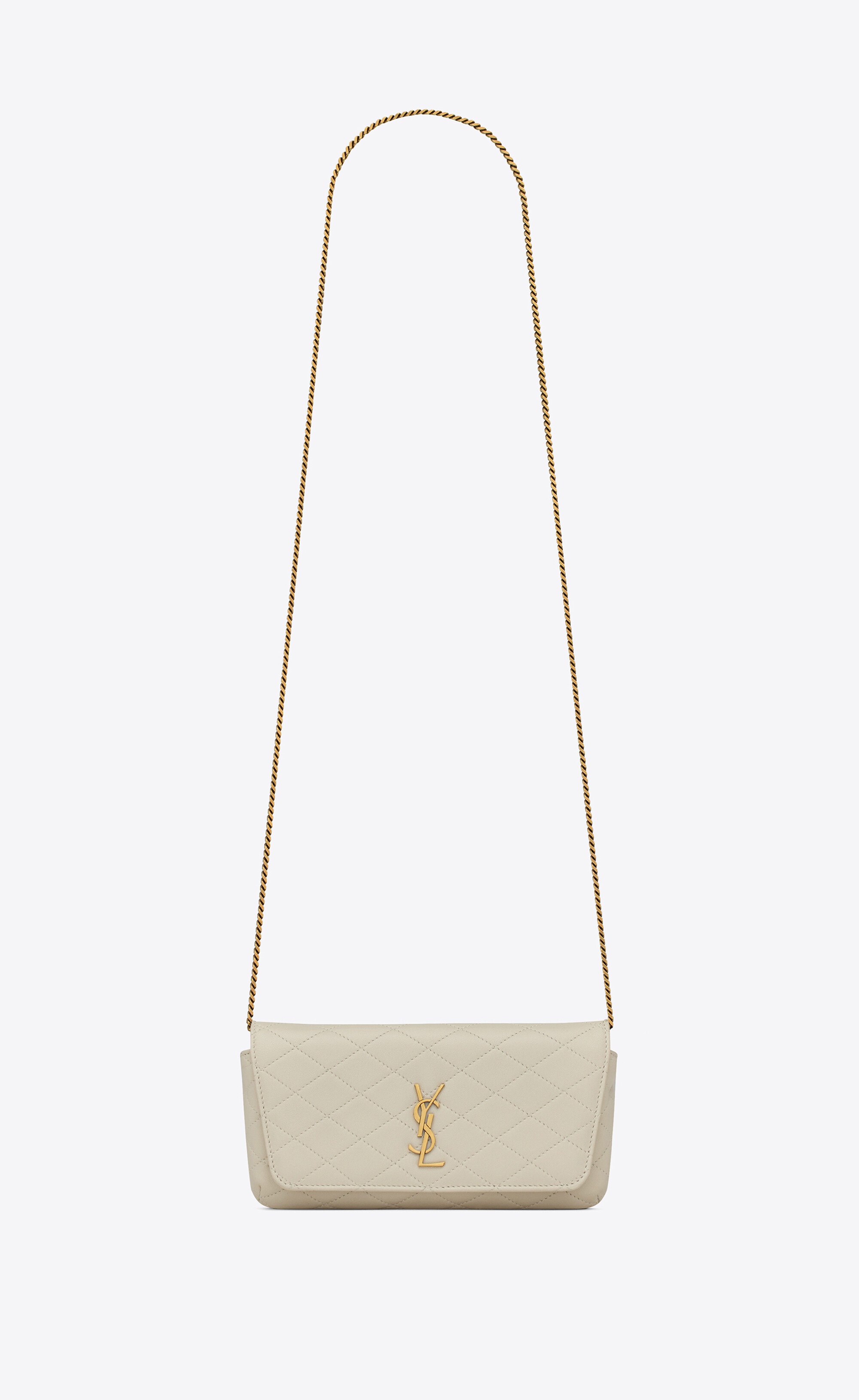 PHONE HOLDER WITH FRONT FLAP, DECORATED WITH THE CASSANDRE AND DIAMOND-QUILTED OVERSTITCHING, FEATURING A CHAIN SHOULDER STRAP. - 100% LAMBSKIN - DIMENSIONS: 19 X 10 X 4.5 CM / 7.5 X 3.9 X 1.8 INCHES - STRAP DROP: 51 CM / 20.1 INCHES - BRONZE-TONED HARDWARE - SNAP-BUTTON CLOSURE - EXTERIOR: ONE FLAT POCKAT AT THE BACK - INTERIOR: ONE MAIN COMPARTMENT - GROSGRAIN LINING - STYLE ID 813086331 - MADE IN ITALY