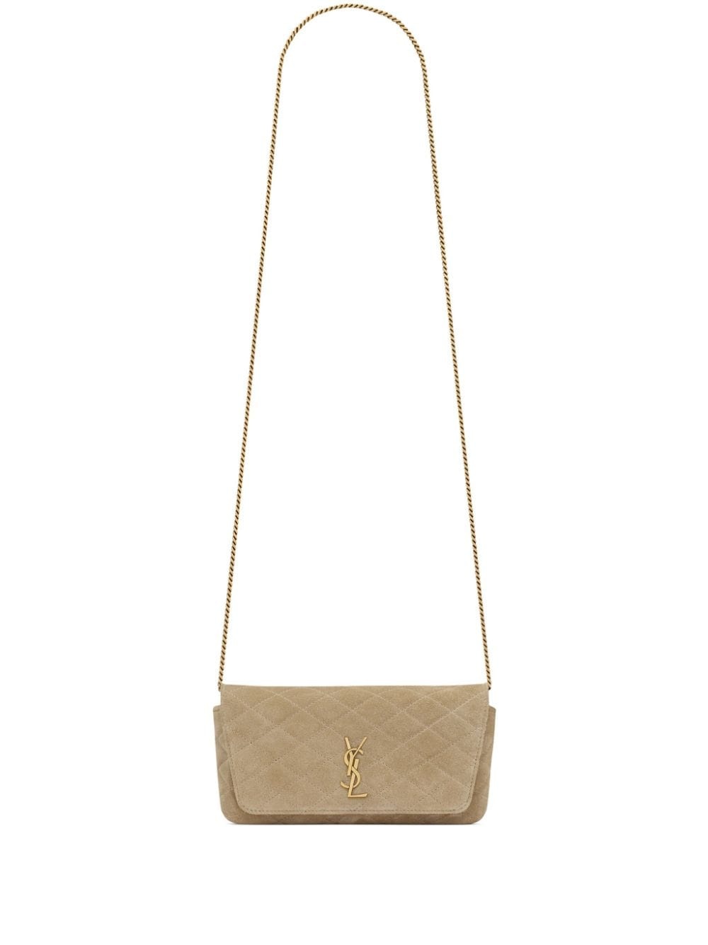 Gaby quilted leather phone case Highlights - Almond beige - Suede - Quilted - Signature ysl logo plaque - Foldover top with magnetic fastening - Main compartment - Detachable chain-link shoulder strap - Rear patch pocket - Main compartment - Internal logo stamp Composition Outer: CALFSKIN 80%, Metal 20%