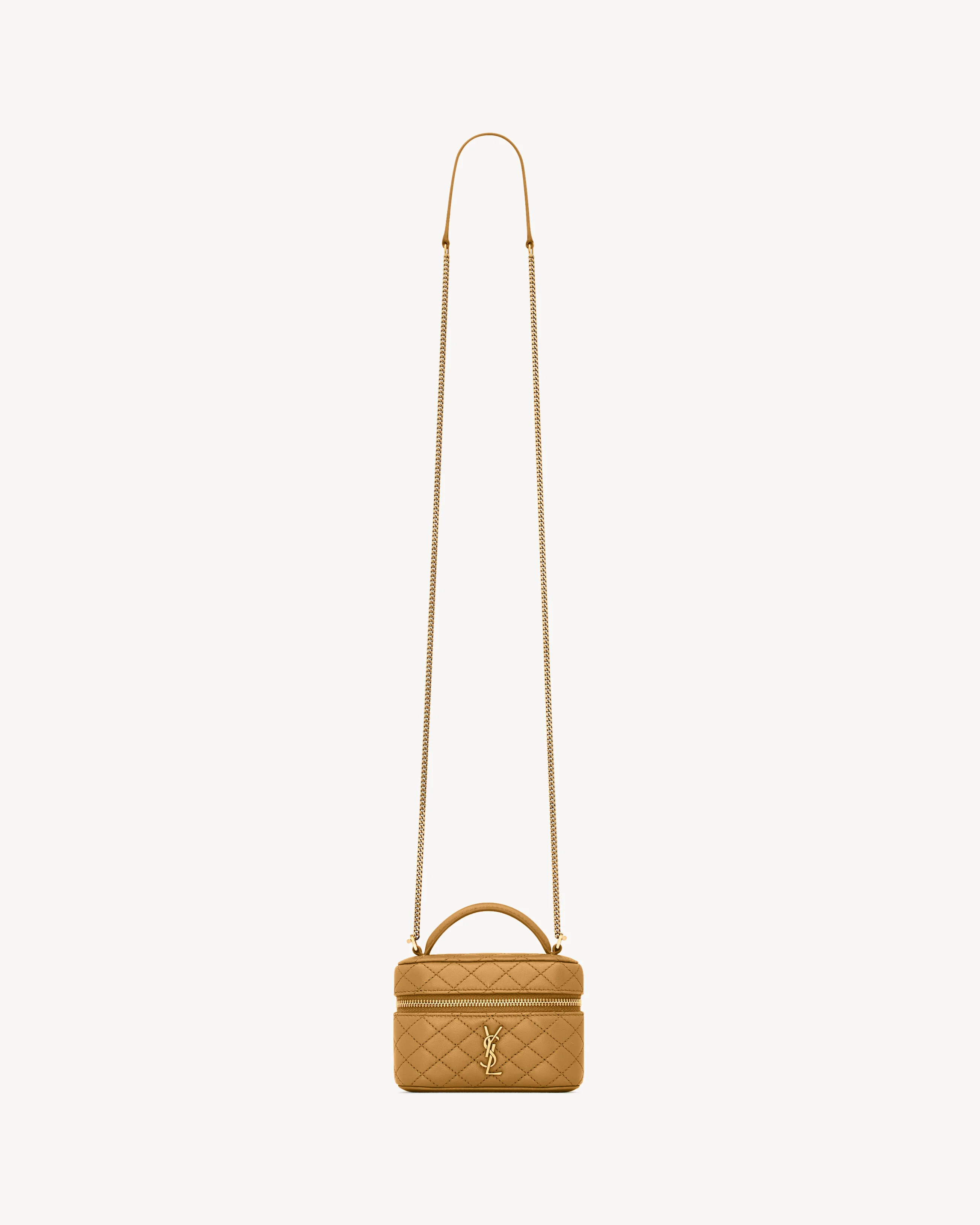 THE MICRO VERSION OF THE GABY VANITY, DECORATED WITH THE CASSANDRE AND DIAMOND-QUILTED TOPSTITCHING. FULLY LINED IN LEATHER, THE BAG FEATURES A DETACHABLE CHAIN STRAP FOR MULTIPLE CARRY OPTIONS. - LEATHER LINING - BRONZE-TONE HARDWARE - ZIP CLOSURE - ONE CARD SLOT - SIZED TO FIT SMALL ITEMS SUCH AS AIRPODS, KEYS, LIPSTICK, AND CARDS - DIMENSIONS: 12 X 8 X 4 CM / 4.7" X 3.1" X 1.6" - HANDLE DROP: 4.5 CM / 1.8" - STRAP DROP: 55 CM / 21.7" - LAMBSKIN, BRASS - STYLE ID 8192851EL077884 - MADE IN ITALY