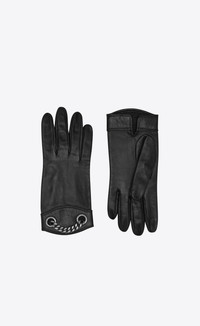 BRACELET-LENGTH GLOVES WITH A PALM VENT, FEATURING A DECORATIVE SILVER-TONED CHAIN. - 100% LEATHER - SAINT LAURENT SIGNATURE ON THE HARDWARE - SLIP ON - SILK LINING - STYLE ID 6769093YI531081 - MADE IN ITALY