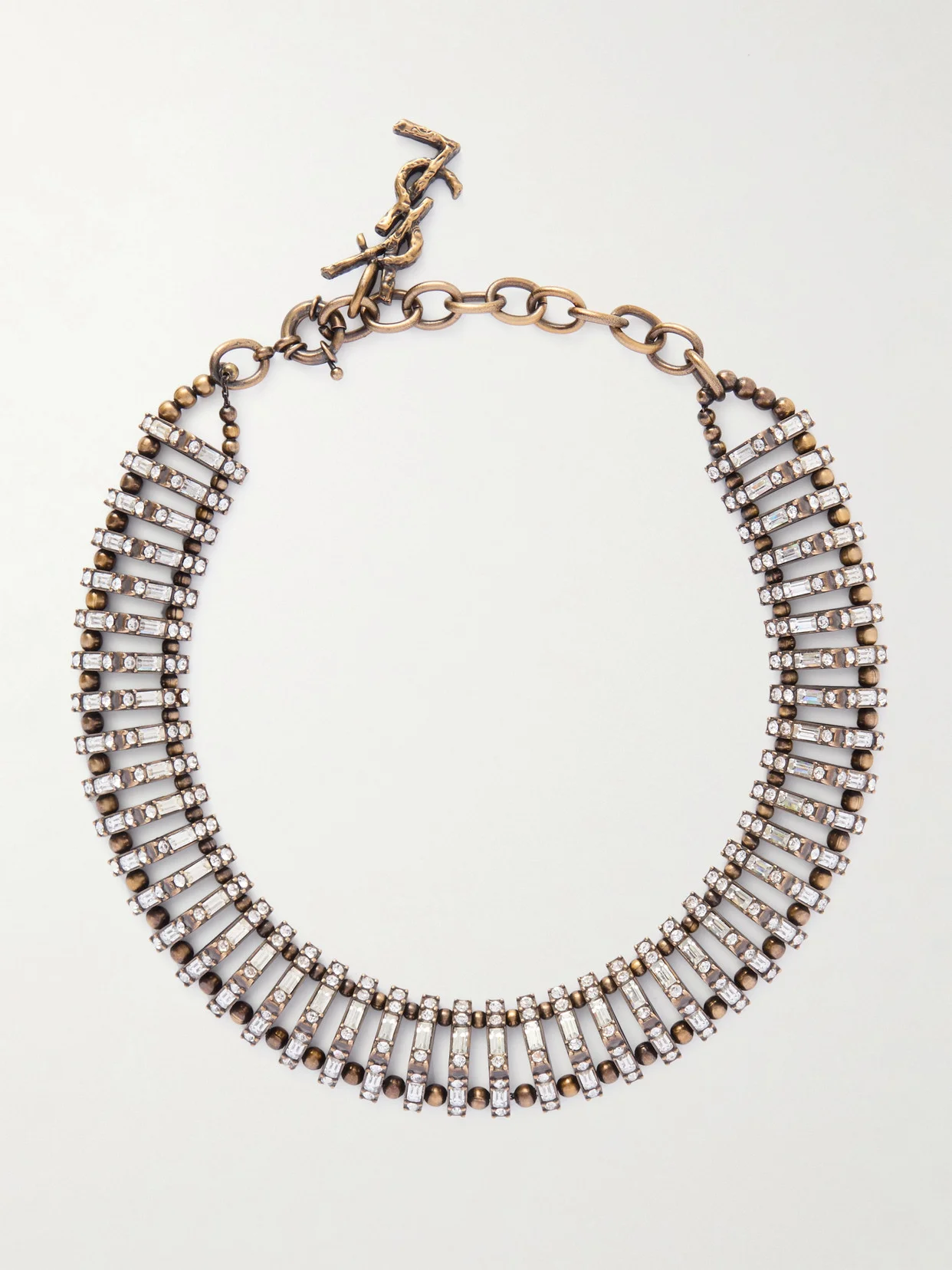 Fall '25 pays homage to the archives, and SAINT LAURENT's necklace evokes the bold, glamorous styles favored by the founder. It's made from antiqued gold-tone metal and set with shimmering crystals along the flexible links. Adjust the length as needed.