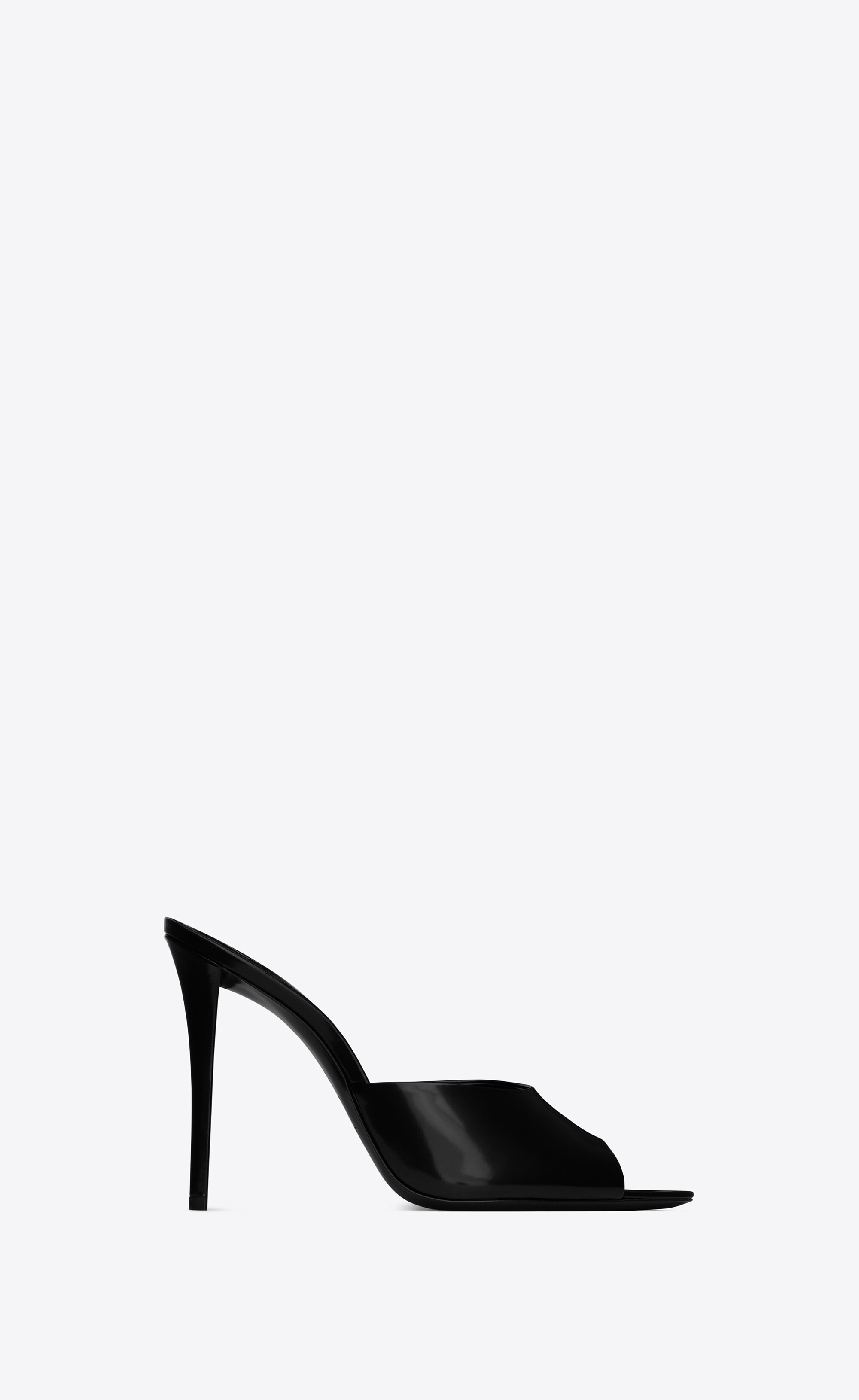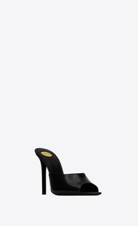 PEEP-TOE MULES WITH AN ALMOND TOE AND STILETTO HEEL, FEATURING A ROUND SAINT LAURENT-ENGRAVED METAL PLAQUE ON THE INSOLE. - 100% CALFSKIN LEATHER - LEATHER SOLE - TOTAL HEEL HEIGHT: 11 CM / 4.3 INCHES - STYLE ID 755352AAAZY1000 - MADE IN ITALY