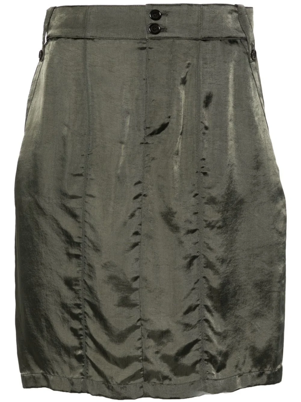 satin pencil mini skirt Highlights - Khaki - Satin weave - Belt loops - Two diagonal pockets to the sides - Two rear welt pockets - Rear elasticated waistband - Button fly fastening Made in Italy Composition Cupro 100% SIZE & FIT Model measurements Height 5 ft 9 in(1.76 m) Bust/Chest 31.88 in(81 cm) Hips 35.43 in(90 cm) Waist 24.8 in(63 cm) Measurement HIPS 35.98 in(91.4 cm) LENGTH 20.98 in(53.3 cm) WAIST 25.98 in(66 cm) FittingInformation This mini-length skirt is intended to be worn high on the waist The partially elasticated waistband offers increased movement and comfort at the waist Made from a lightweight non-stretch fabric This piece fits true to size – take your usual size