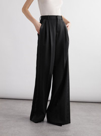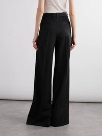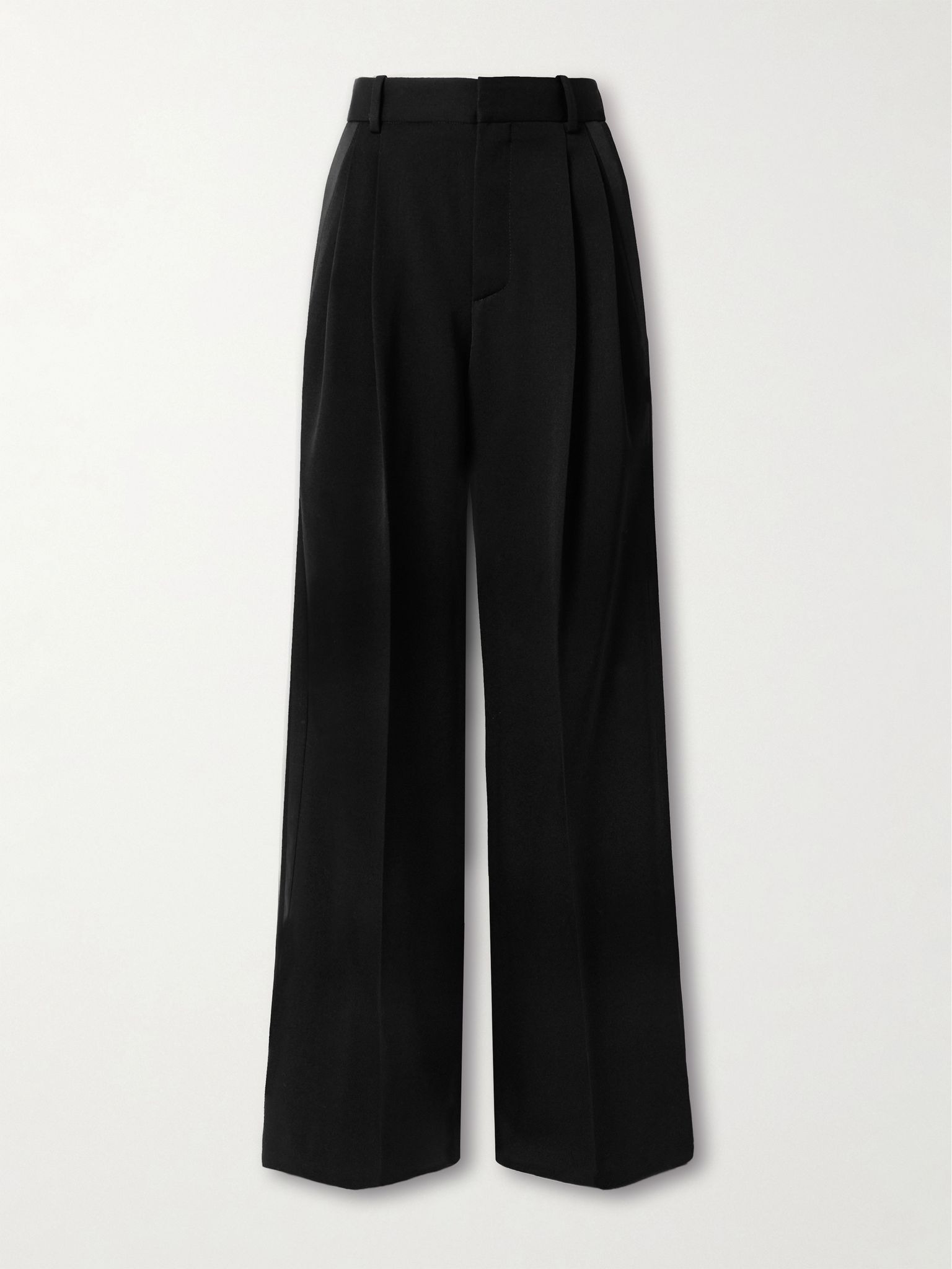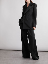 SAINT LAURENT's pants are inspired by tuxedo trousers and will perfectly complement an iconic 'Le Smoking' jacket. They've been tailored in Italy from grain de poudre wool and detailed with tonal stripes along the wide legs. Size & Fit - Fits true to size, take your normal size - High-rise, cut for a wide-leg fit - Mid-weight, non-stretchy fabric - Model is 175cm/ 5'9" and is wearing a FR 36 Details & Care - Black grain de poudre wool - Concealed zip fastening along front - 100% wool