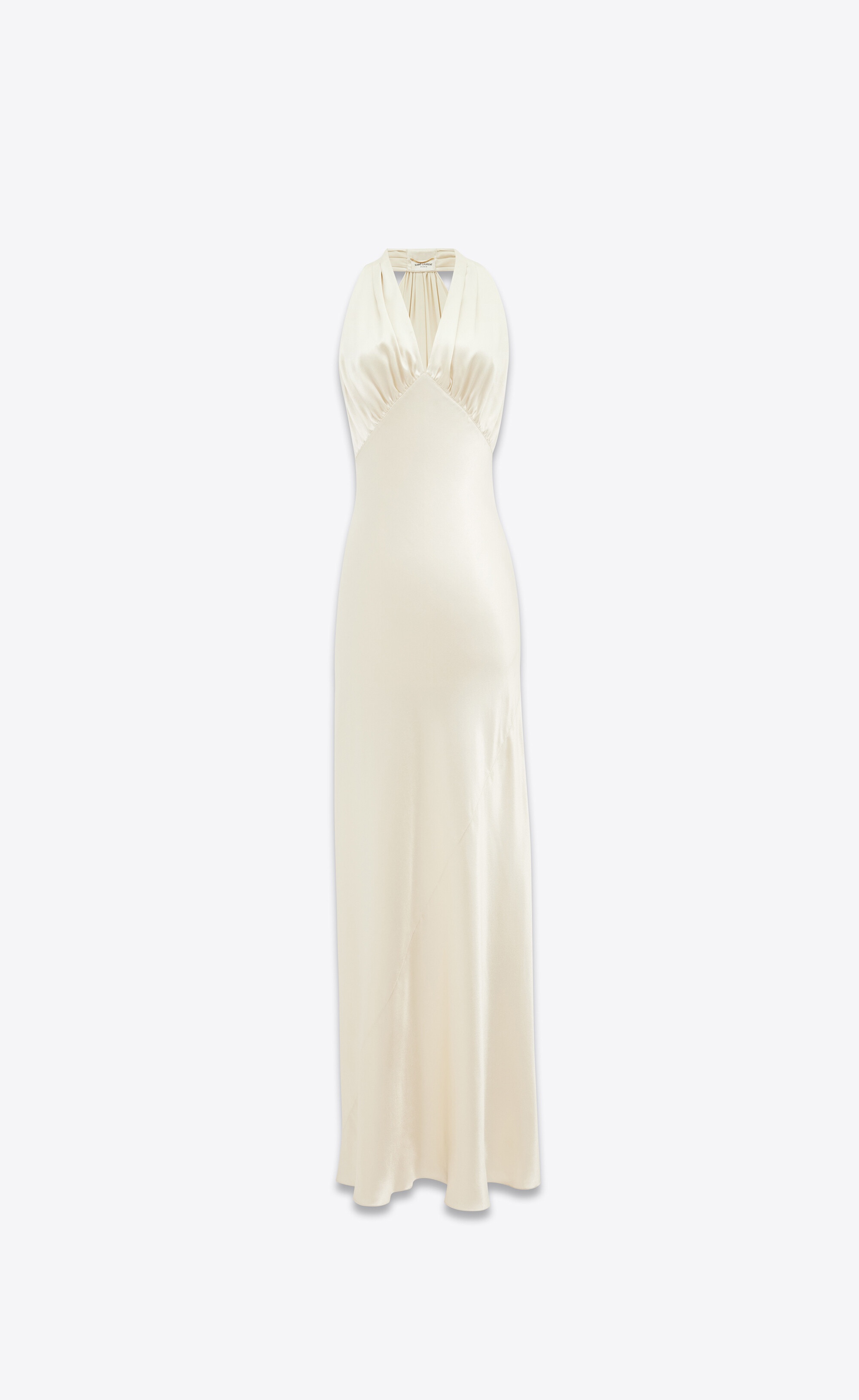 LONG BIAS-CUT SLIP DRESS WITH A GATHERED, HALTER V NECKLINE AND A DRAPED DETAIL AT THE BACK. - 69% ACETATE, 31% SILK - HALTER V NECKLINE - STYLE ID 797586Y8I679345 - MADE IN FRANCE