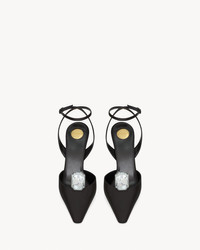 PUMPS WITH A FLARED HEEL, POINTED TOE, AND LOW-CUT VAMP WITH FLOATING CRYSTAL, FEATURING AN ADJUSTABLE ANKLE STRAP. - CERTIFIED VISCOSE AND CERTIFIED SILK - LEATHER SOLE - ROUND SAINT LAURENT-ENGRAVED METAL PLAQUE ON THE INSOLE - ADJUSTABLE ANKLE STRAP - TOTAL HEEL HEIGHT: 11 CM / 4.3 INCHES - VISCOSE, SILK - STYLE ID 8092189QNBL1091 - MADE IN ITALY