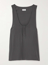 EDITORS'NOTES SAINT LAURENT's tank is made from silk-satin that drapes languidly over your frame. It has a slightly loose fit and streamlined fastening to add to its minimal feel. While it'll work with everything in your wardrobe, we think it looks especially chic tucked into the coordinating pants in our edit - use a black belt to break up the gray. SIZE & FIT - Fits true to size, take your normal size - Designed for a slightly loose fit - Mid-weight, non-stretchy fabric - Model is 177cm/ 5'10" and is wearing a FR 34 DETAILS & CARE - Gray silk-satin - Concealed button fastenings along top - 100% silk - Dry clean