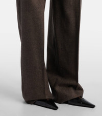 Since its conception in 1961, Saint Laurent has been coveted for its elegant Parisian aesthetic. Crafted in Italy from herringbone wool, these wide-leg pants feature a mid-rise style. Product Details - Material: 100% wool - Care instructions: dry clean - Made in Italy - Designer color name: Marron Noir - Item color: brown - Lining: 97% cotton, 3% elastane - Contains non-textile parts of animal origin - Closure: zip, hook, and button fastening - Belt loops - Double pleat - Pockets: slant pockets, back pockets - Hem: unfinished (ready for alteration) - Item number: P01078528 Size & Fit - True to size - Non-stretchy fabric - Wide-leg - High-waisted - Unhemmed for tailoring - The model seen in the picture is 178cm-5'10" and wearing a size FR 34