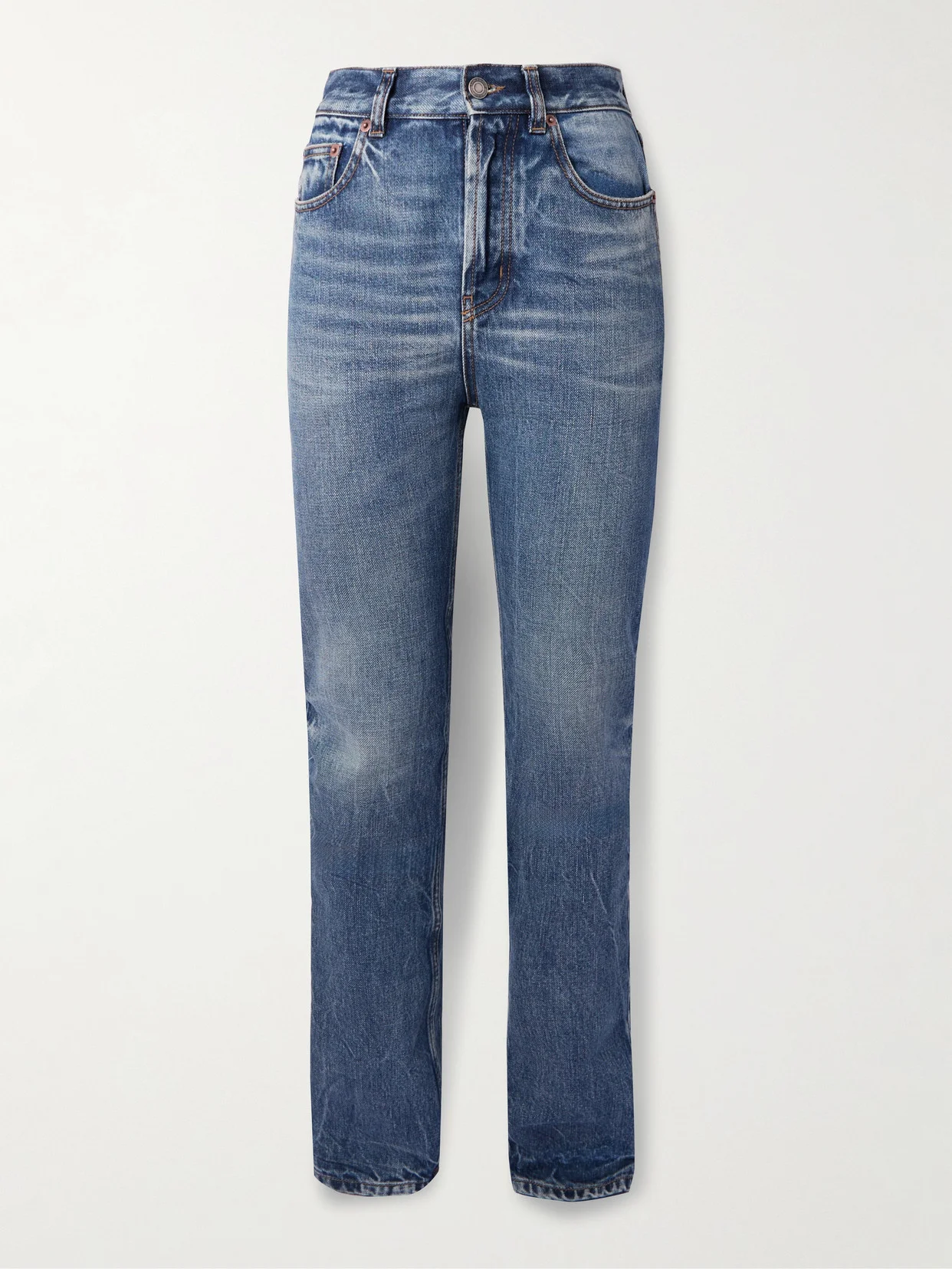 Inspired by styles from the '90s, SAINT LAURENT's jeans are cut for a slim fit and have a comfortable high rise. They're made from faded denim and have elongated hems that work well with pumps.