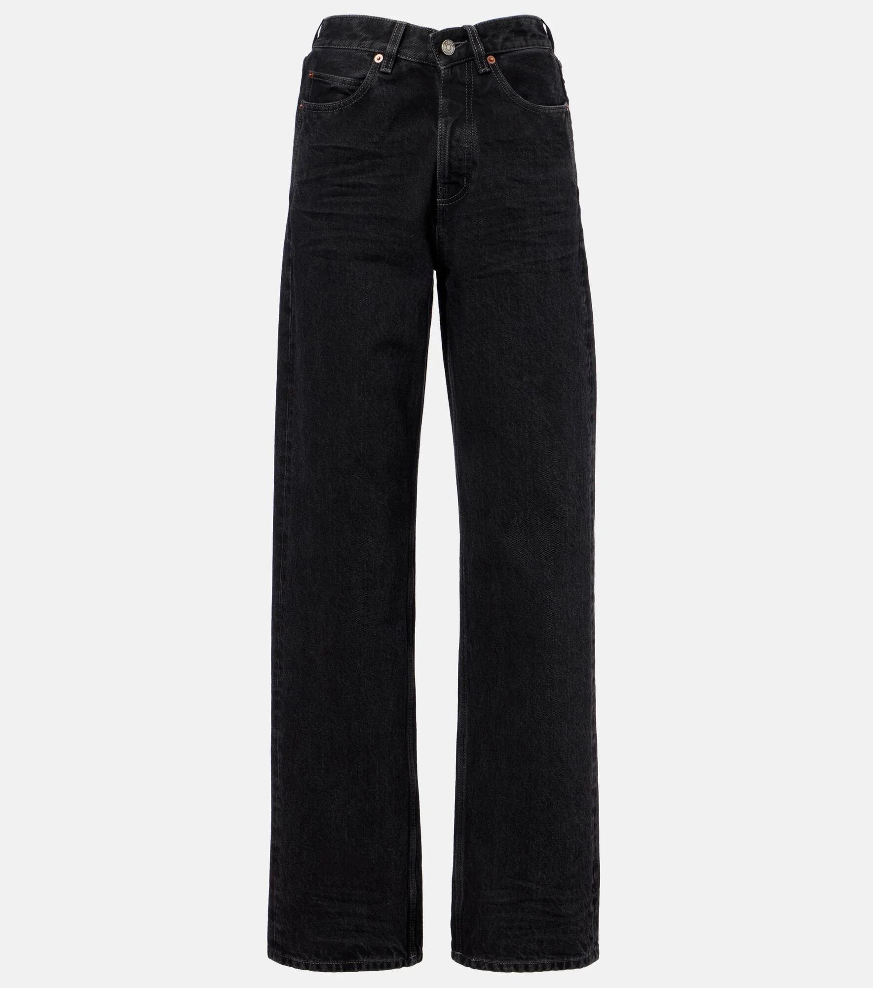 Since its conception in 1961, Saint Laurent has been coveted for its elegant Parisian aesthetic. These wide-leg jeans are made from cotton denim and are defined by the V-shaped, high-rise waistline. Product Details - Material: 100% cotton - Care instructions: machine wash at 30 degrees - Made in Italy - Designer color name: 90's French Black - Item color: black - Details: 100% calf leather - Pockets: five pockets - Closure: button fastening - Belt loops - Contains non-textile parts of animal origin - Item number: P01078580 Size & Fit - True to size - Sizing adapted to taller women - Non-stretchy fabric - Wide-leg - High-rise - The model seen in the picture is 178cm-5'10" and wearing a size 26