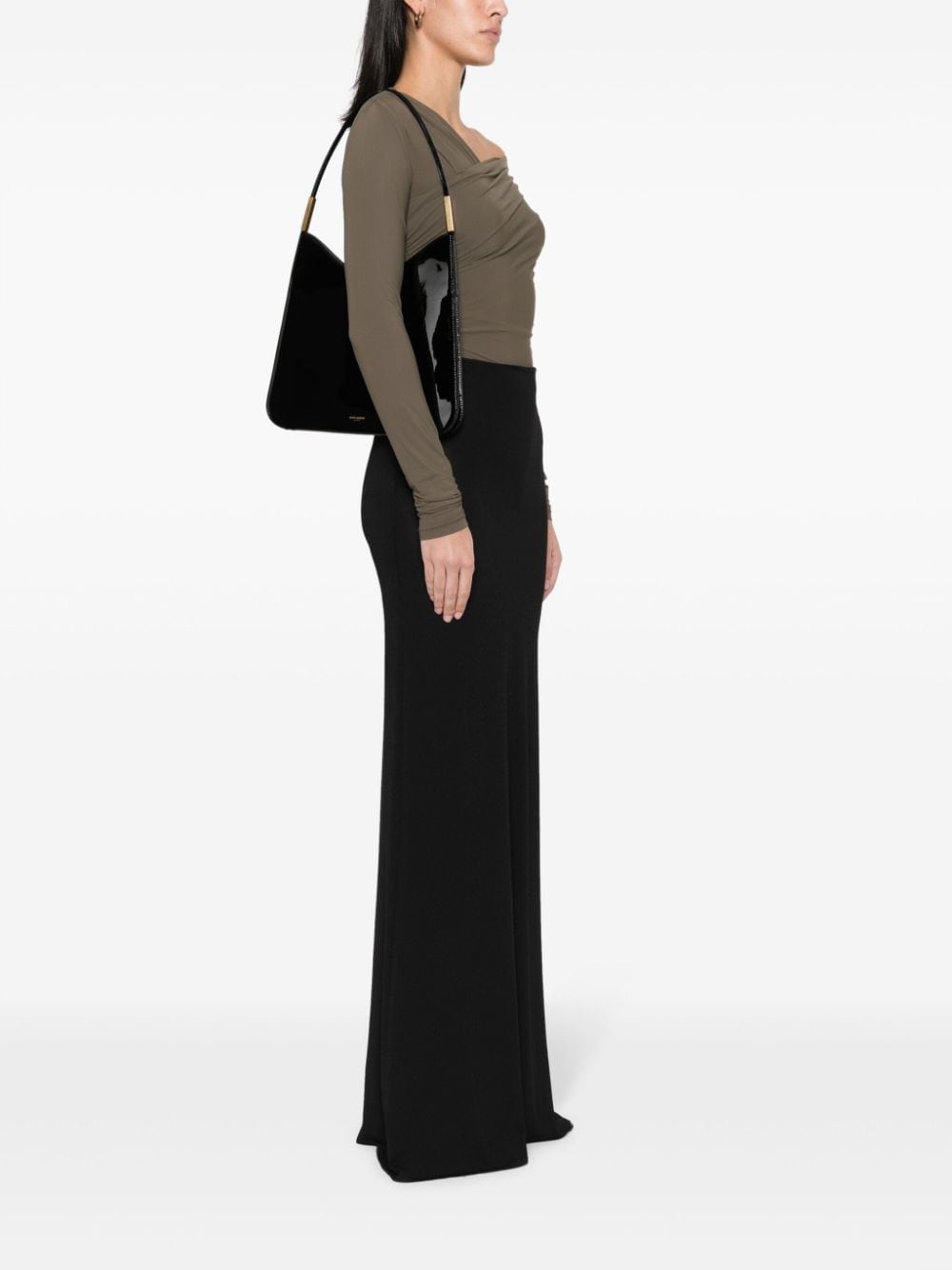 Sadie logo-print tote bag Highlights - Black - Calf leather - Patent finish - Logo print to the front - Engraved logo - Single top handle - Open top - Main compartment - Internal logo stamp - Internal zip-fastening pocket Made in Italy Composition Outer: Calf Leather 100% SIZE & FIT Model measurements Height 5 ft 10 in(1.78 m) Bust/Chest 33.07 in(84 cm) Hips 35.82 in(91 cm) Waist 25.98 in(66 cm) Measurement DEPTH 0.78 in(2 cm) HANDLE 10.23 in(26 cm) HEIGHT 9.05 in(23 cm) WIDTH 12.2 in(31 cm)