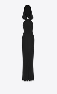 LONG HOODED DRESS MADE WITH RESPONSIBLE VISCOSE, WITH DRAPING DETAILS AT THE NECKLINE AND OPEN BACK. - 100% VISCOSE - VISCOSE FROM CERTIFIED SUSTAINABLY MANAGED FORESTS - PRESS STUD AT THE NECK - HOOD - STYLE ID 741650Y7F931000 - MADE IN ITALY
