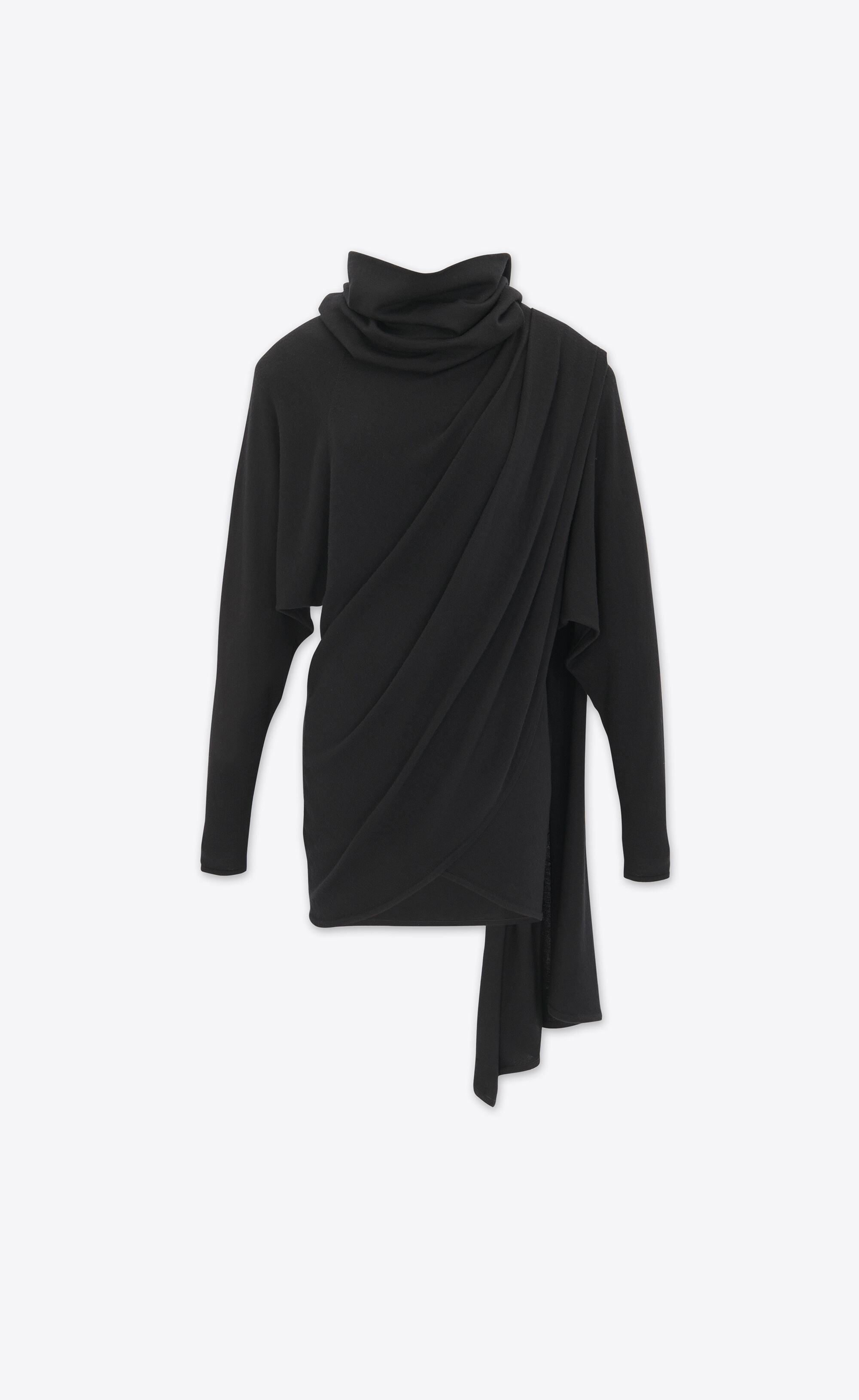 SHORT HOODED DRESS MADE WITH RESPONSIBLE WOOL, FEATURING PADDED SHOULDERS AND A WRAP FRONT DRAPED OVER THE SHOULDER. - 100% WOOL - RESPONSIBLE WOOL - HOOD - PADDED SHOULDERS - STYLE ID 751695Y75SW1000 - MADE IN ITALY