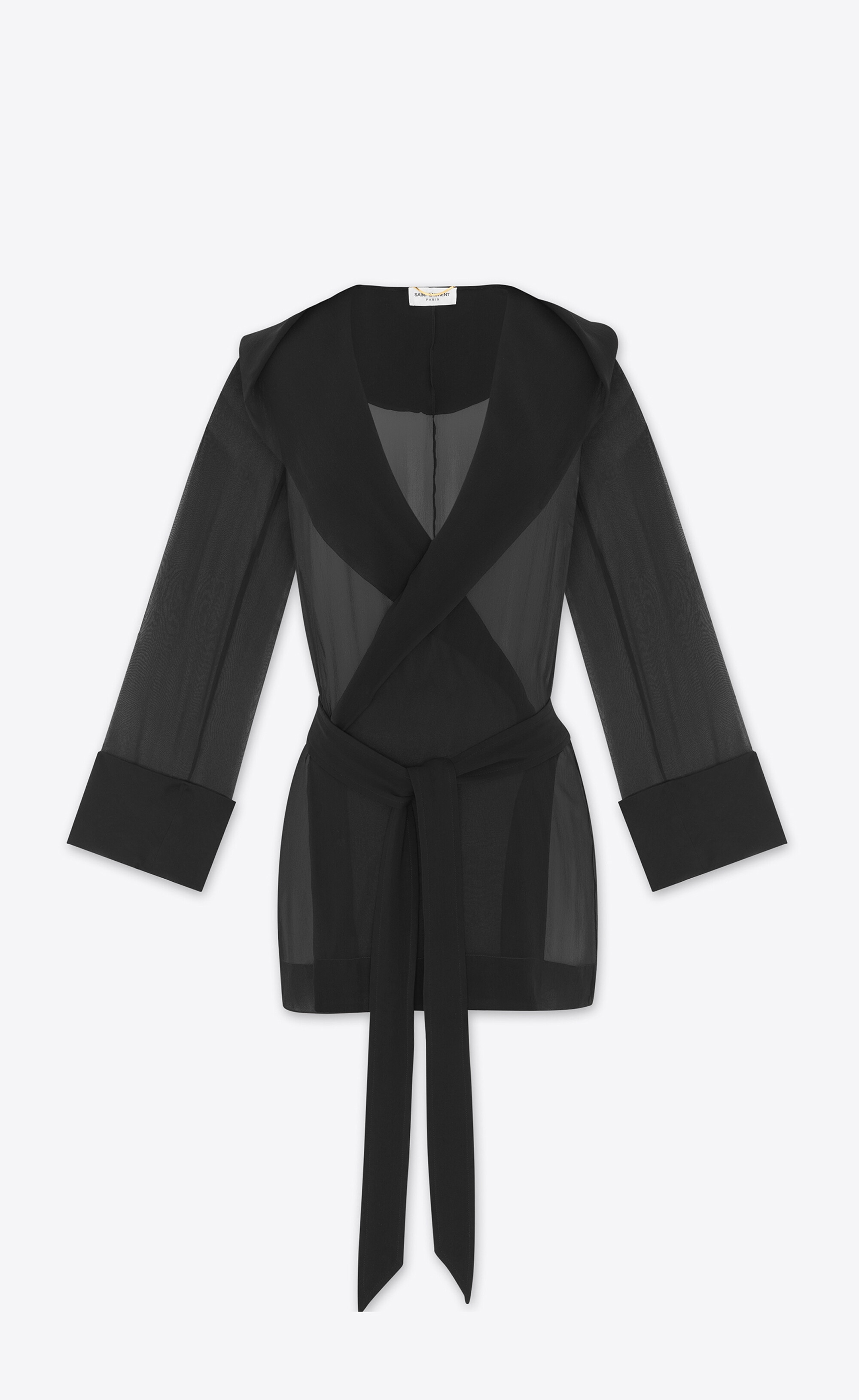 HOODED JACKET MADE WITH ORGANIC SILK, WITH SHAWL NECKLINE, BELT AT THE WAIST AND UPTURNED CUFF. - 100% SILK - ORGANIC SILK - ADJUSTABLE BELT - SIDE SLIT POCKETS - UPTURNED CUFF - HOOD - STYLE ID 747442Y115W1000 - MADE IN FRANCE