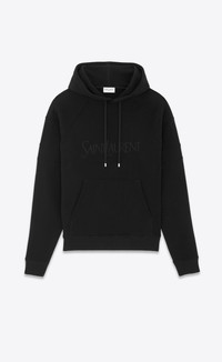 FLEECE HOODIE FEATURING ADJUSTABLE DRAWSTRING HOOD, KANGAROO POCKET AT THE FRONT AND SAINT LAURENT EMBROIDERY ON THE CHEST. - 100% COTTON - ORGANIC COTTON - ADJUSTABLE DRAWSTRING HOOD - RIB-KNIT CUFF AND HEM - STYLE ID 728319Y37CG1000 - MADE IN FRANCE