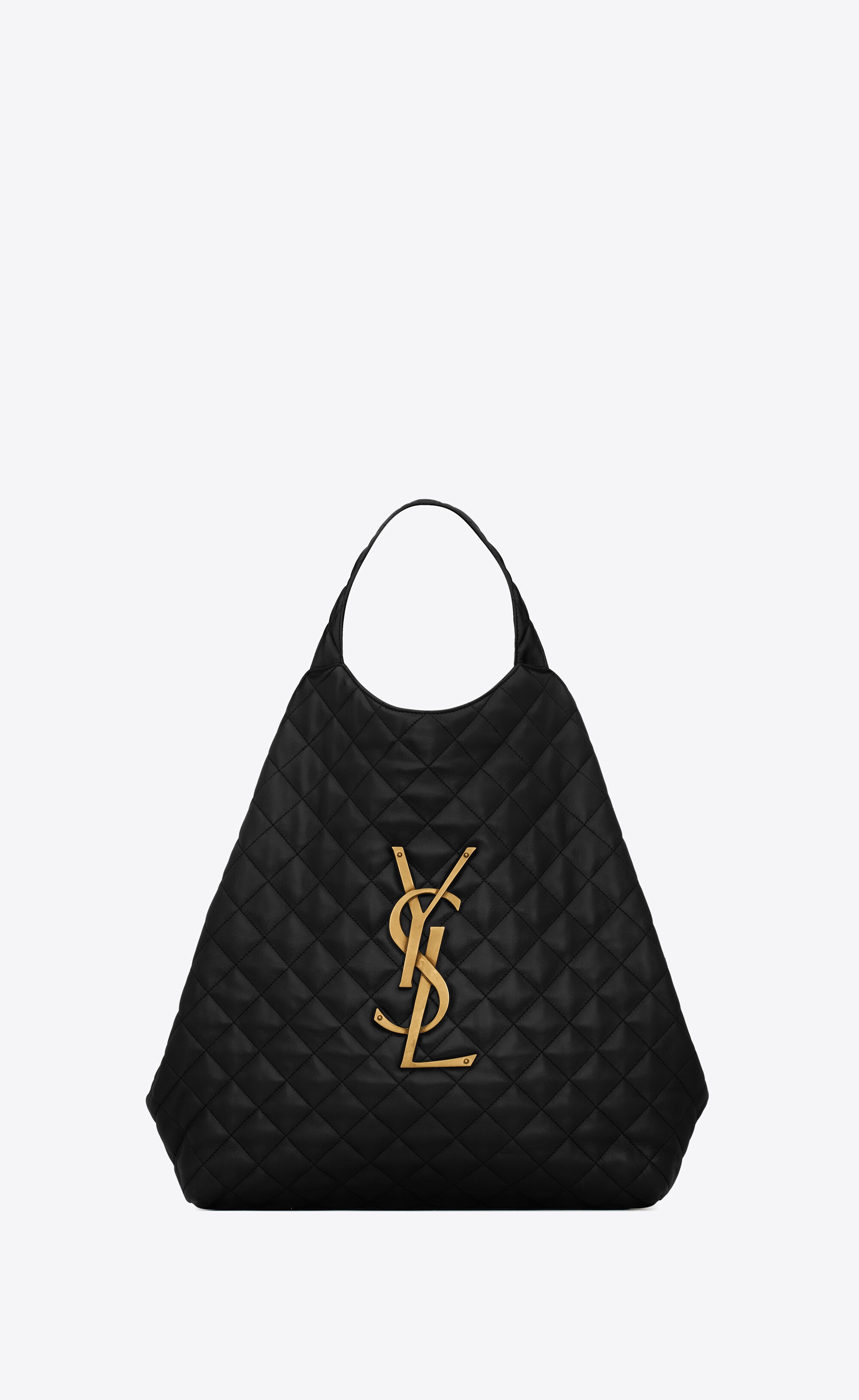 MAXI SHOPPING BAG WITH TOGGLE CLOSURE, FEATURING A REMOVABLE ZIPPED POUCH, DECORATED WITH CARRÉ-QUILTED OVERSTITCHING AND THE NEW SCULPTED JEWEL YSL ICONIC SIGNATURE. - 90% LAMBSKIN, 10% BRASS - DIMENSIONS: 38/58 X 43 X 8 CM / 15/22.8 X 16.9 X 3.1 INCHES - HANDLE DROP: 23 CM / 9 INCHES - CAN BE WORN WIDE OR WITH CLOSED SIDES - BRONZE-TONED METAL HARDWARE - DETACHABLE METAL CHAIN TOGGLE CLOSURE - INTERIOR: ONE MAIN COMPARTMENT, ONE REMOVABLE ZIPPED POUCH - GROSGRAIN LINING - STYLE ID 810579458 - MADE IN ITALY