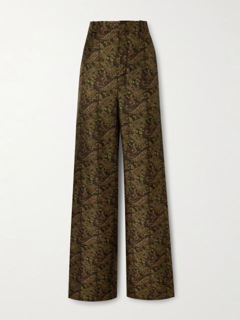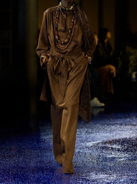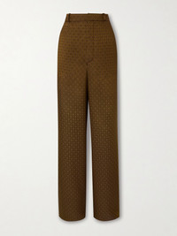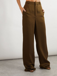 For SAINT LAURENT's Spring '25 collection, Creative Director Anthony Vaccarello paid homage to the label's founder by drawing inspiration from his signature aesthetic as well as his renowned gardens in Marrakech. These pants are jacquard-woven with a pretty geometric motif and have a high waist and wide legs. Emulate the runway by styling yours with the matching tunic in our edit. Size & Fit - Fits true to size, take your normal size - High-rise, designed for a wide-leg fit - Particularly long in length - Mid-weight, non-stretchy fabric - Model is 175cm/ 5'9" and is wearing a FR 34 Model measurements: - Bust: 75cm/ 29.5” - Waist: 61cm/ 24" - Hip: 88cm/ 34.5" Details & Care - Multicolored jacquard - Concealed snap and zip fastening at front - 48% acetate, 38% viscose, 14% polyester