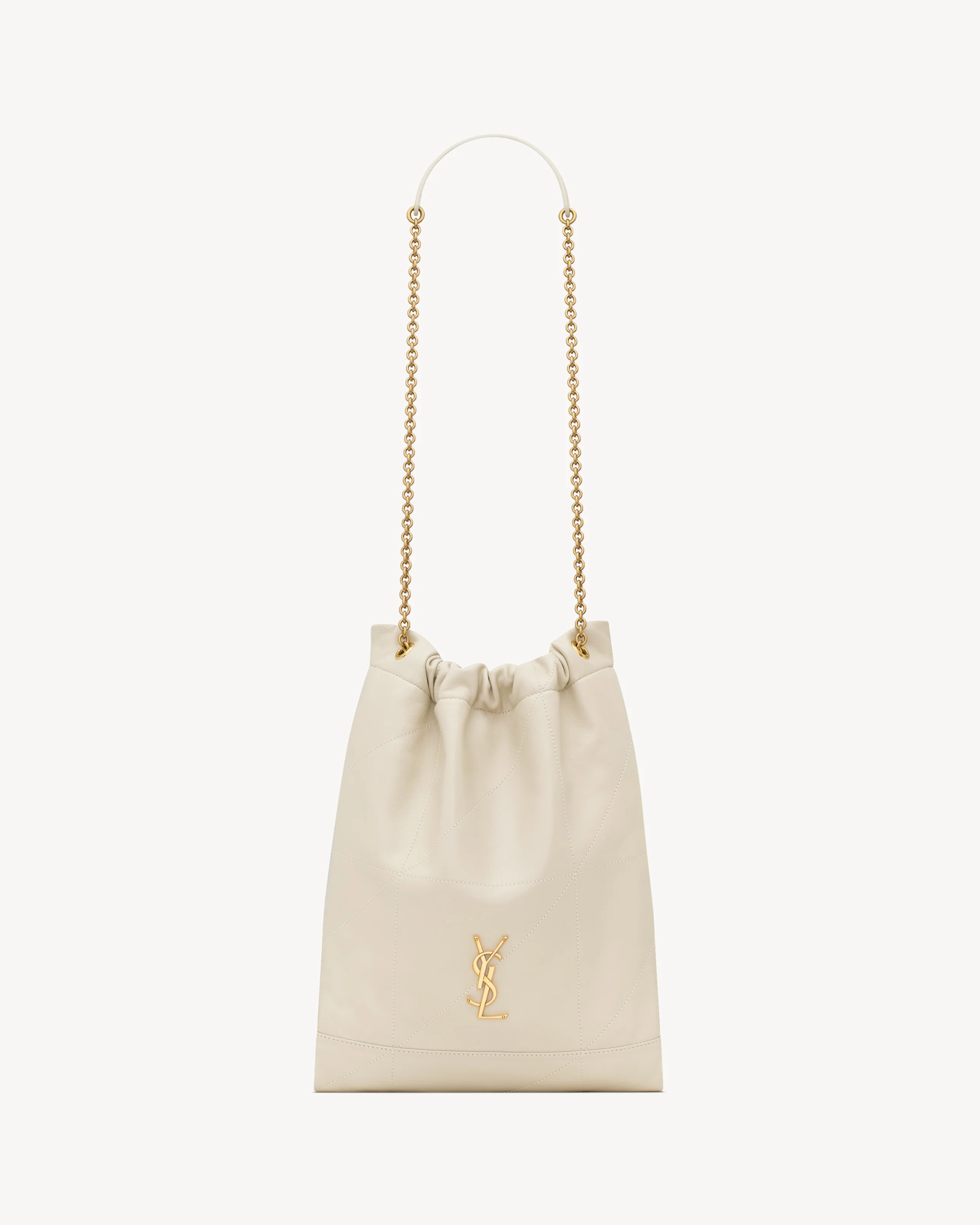 THE POUCH VERSION OF THE JAMIE 4.3, IN SUPPLE NAPPA FEATURING CARRE RIVE GAUCHE TOPSTITCHING AND A REMOVABLE ZIP POUCH. LIGHTWEIGHT AND SPACIOUS, THIS ADJUSTABLE BAG FEATURES A DRAWSTRING CHAIN STRAP FOR BESPOKE CARRY OPTIONS. - CERTIFIED COTTON LINING - BRONZE-TONED HARDWARE - DIMENSIONS: 27 X 34 X 3 CM / 10.6" X 13.4" X 1.2" - STRAP DROP: 39 CM / 15.4" - LAMBSKIN, BRASS - STYLE ID 781666AAB329207 - MADE IN ITALY