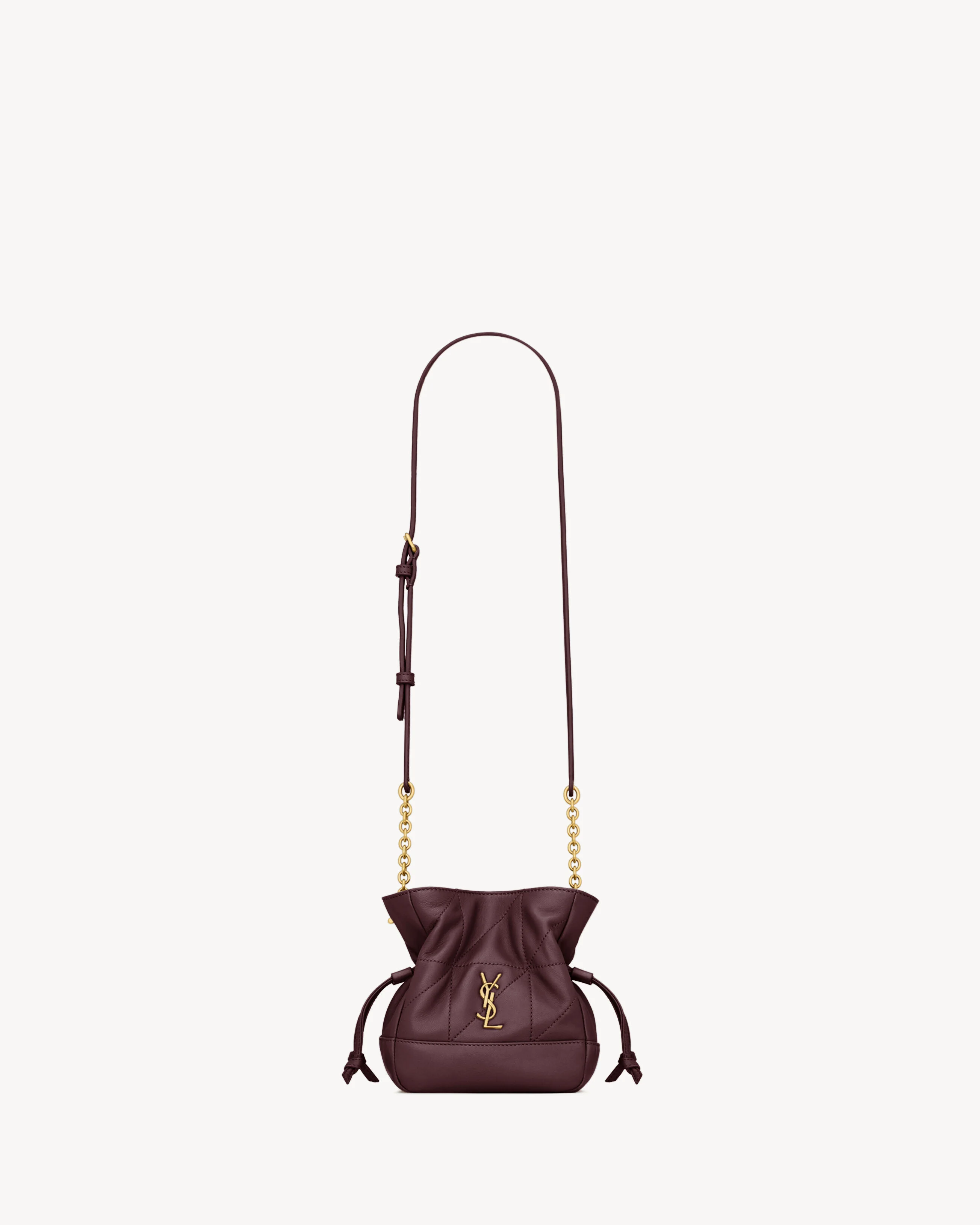 THE MINI SHOULDER POUCH VERSION OF THE JAMIE IN SUPPLE LAMBSKIN, DECORATED WITH THE CASSANDRE AND CARRE RIVE GAUCHE TOPSTITCHING. THIS LIGHT AND COMPACT BAG FEATURES A LEATHER-AND-CHAIN STRAP FOR SHOULDER OR CROSSBODY CARRY. DRAWSTRING TIES ALLOW THE SIDES TO BE CINCHED OR EXPANDED TO CREATE DIFFERENT SILHOUETTES. - LEATHER LINING - BRONZE-TONE HARDWARE - DRAWSTRING AND SNAP-BUTTON CLOSURE - DIMENSIONS: 14.5 X 15.5 X 8 CM / 5.7" X 6.1" X 3.1" - STRAP DROP: 50 CM / 19.7" - CUIR D'AGNEAU METAL - STYLE ID 859174AAB326195 - MADE IN ITALY