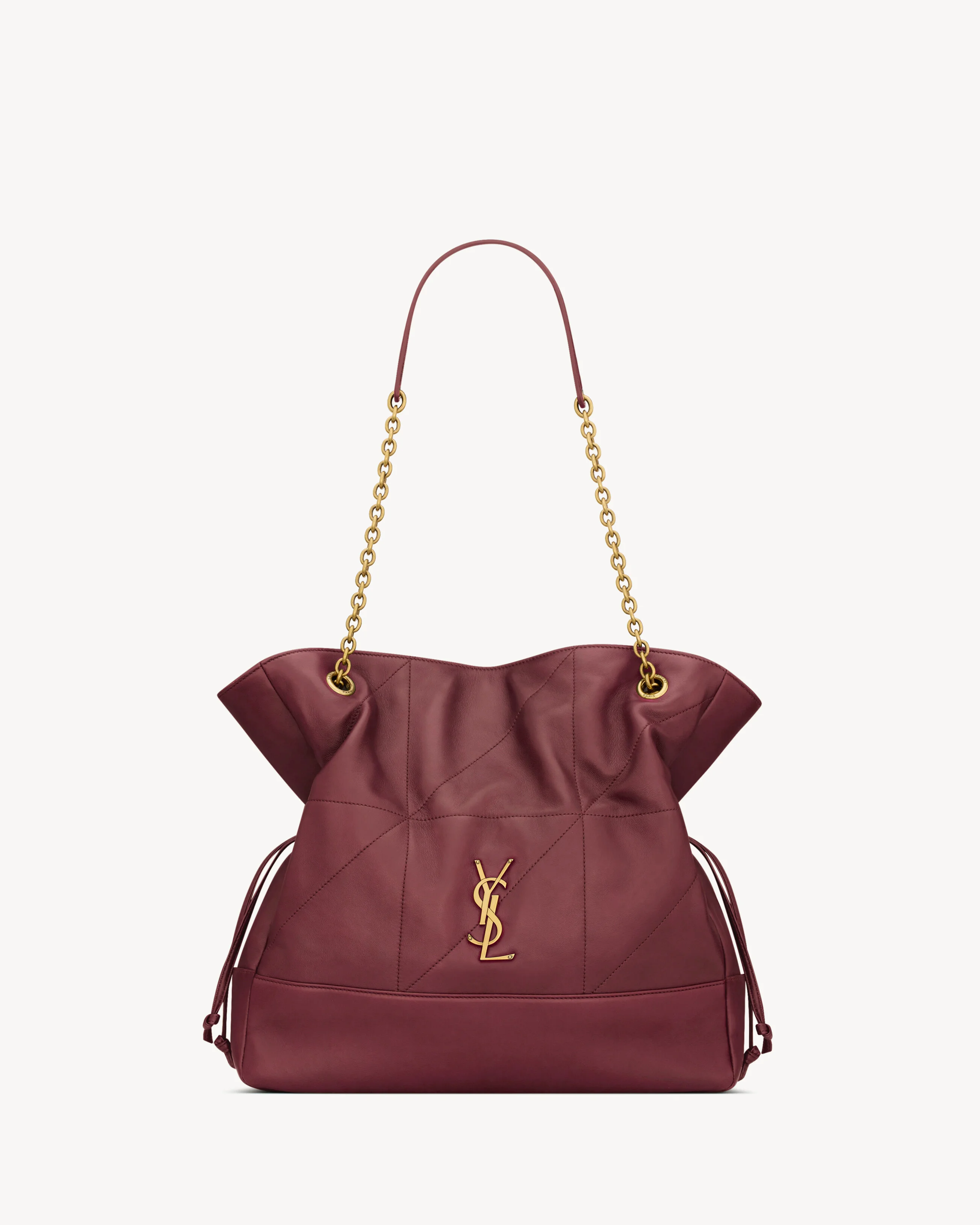 THE SHOPPING VERSION OF THE JAMIE IN SUPPLE NAPPA, DECORATED WITH THE CASSANDRE AND CARRE RIVE GAUCHE TOPSTITCHING. THIS LIGHTWEIGHT AND SPACIOUS BAG FEATURES A CHAIN STRAP AND REMOVABLE ZIP POUCH. A CHAIN AND DRAWSTRING TIES ALLOW THE SIDES TO BE CINCHED OR EXPANDED TO CREATE DIFFERENT SILHOUETTES. - COTTON LINING - BRONZE-TONED HARDWARE - MAGNETIC CLOSURE - DIMENSIONS: 35 X 35 X 10 CM / 13.7" X 13.7" X 3.9" - STRAP DROP: 32 CM / 12.5" - LAMBSKIN, BRASS - STYLE ID 809824AAB326592 - MADE IN ITALY