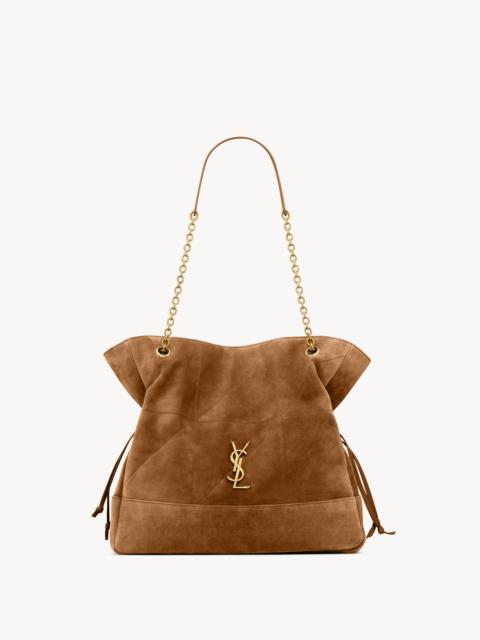 THE TOTE VERSION OF THE JAMIE IN SUEDE, DECORATED WITH THE CASSANDRE AND CARRE RIVE GAUCHE TOPSTITCHING. THIS LIGHTWEIGHT AND SPACIOUS BAG FEATURES A CHAIN STRAP AND REMOVABLE ZIP POUCH. DRAWSTRING TIES ALLOW THE SIDES TO BE CINCHED OR EXPANDED TO CREATE DIFFERENT SILHOUETTES. - COTTON LINING - BRONZE-TONE HARDWARE - MAGNETIC CLOSURE - DIMENSIONS: 35 X 35 X 10 CM / 13.7" X 13.7" X 3.9" - STRAP DROP: 30 CM / 11.8" - CALFSKIN BRASS - STYLE ID 8098241U8P72916 - MADE IN ITALY