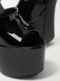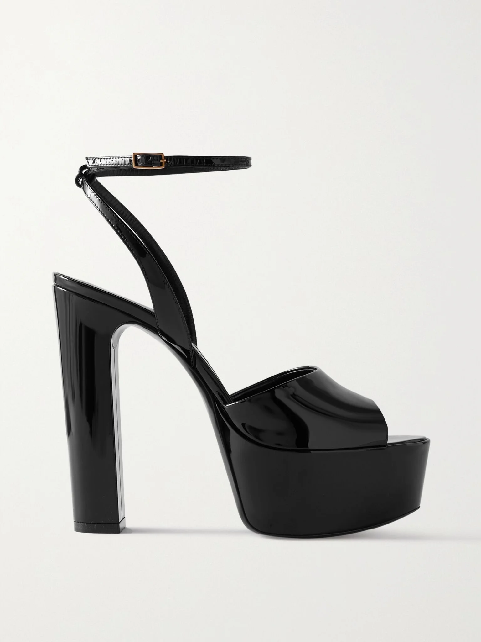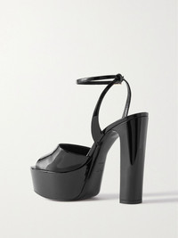 SAINT LAURENT's 'Jodie' sandals could have been transported straight from a '70s dance floor with their stacked platform soles and towering block heels. They've been made in Italy from glossy black patent-leather and fasten with a gold buckle at the supportive ankle strap. Size & Fit Fits true to size, please refer to SAINT LAURENT size guide below: - IT 36 = UK 3/ US 6/ EU 36/ FR 37 - IT 36.5 = UK 3.5/ US 6.5/ EU 36.5/ FR 37.5 - IT 37 = UK 4/ US 7/ EU 37/ FR 38 - IT 37.5 = UK 4.5/ US 7.5/ EU 37.5/ FR 38.5 - IT 38 = UK 5/ US 8/ EU 38/ FR 39 - IT 38.5 = UK 5.5/ US 8.5/ EU 38.5/ FR 39.5 - IT 39 = UK 6/ US 9/ EU 39/ FR 40 - IT 39.5 = UK 6.5/ US 9.5/ EU 39.5/ FR 40.5 - IT 40 = UK 7/ US 10/ EU 40/ FR 41 - IT 40.5 = UK 7.5/ US 10.5/ EU 40.5/ FR 41.5 - IT 41 = UK 8/ US 11/ EU 41/ FR 42 - IT 41.5 = UK 8.5/ US 11.5/ EU 41.5/ FR 42.5 - IT 42 = UK 9/ US 12/ EU 42/ FR 43 Details & Care - Heel measures approximately 125mm/ 5 inches with a 85mm/ 3.5 inches platform - Black patent-leather (Calf) - Buckle-fastening ankle strap