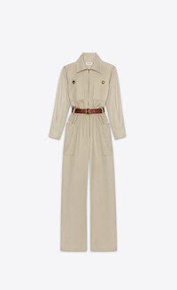 BELTED JUMPSUIT MADE WITH ORGANIC COTTON, FEATURING A LONG-SLEEVE ZIP TOP WITH PADDED SHOULDERS, PATCH POCKETS, AND WIDE-LEG PANTS. - 100% COTTON - ORGANIC COTTON - FRONT ZIP CLOSURE - REMOVABLE PIN-BUCKLE BELT - TWO BUTTONED PATCH POCKETS AT THE CHEST - TWO PATCH POCKETS AT THE SIDES - POINTED COLLAR - ONE-BUTTON CUFFS - PADDED SHOULDERS - STYLE ID 785813Y9I229610 - MADE IN ITALY