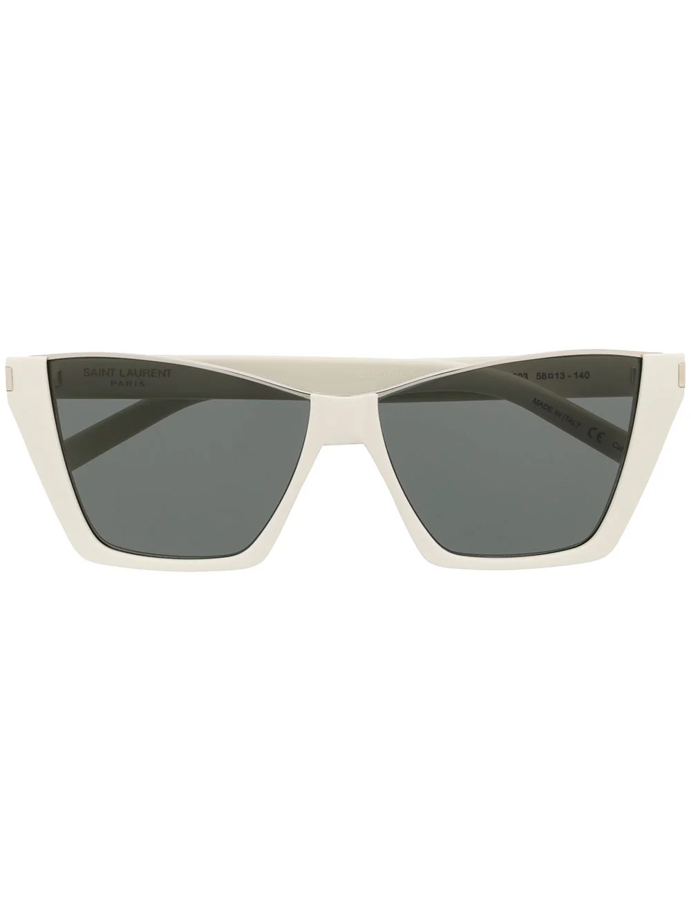 Kate cat-eye frame sunglasses You should always have a nice pair of shades at hand. Designed with a cat-eye frame and detailed with grey tinted lenses, these Kate sunglasses from Saint Laurent Eyewear are the best way to conceal that "morning after" look. You can thank us later. Highlights - White/silver-tone - Cat-eye frame - Grey tinted lenses - Uv-protective lenses - Logo-embossed arm - Straight arms - Curved tips - We know you'll look after them, but these glasses come with protection, just in case. Made in Italy Composition Metal 100%, Acetate 100% SIZE & FIT Measurement Arm Length 5.51 in(14 cm) Bridge Width 0.51 in(1.3 cm) Lens Diameter 2.28 in(5.8 cm) Total Width 5.7 in(14.5 cm)