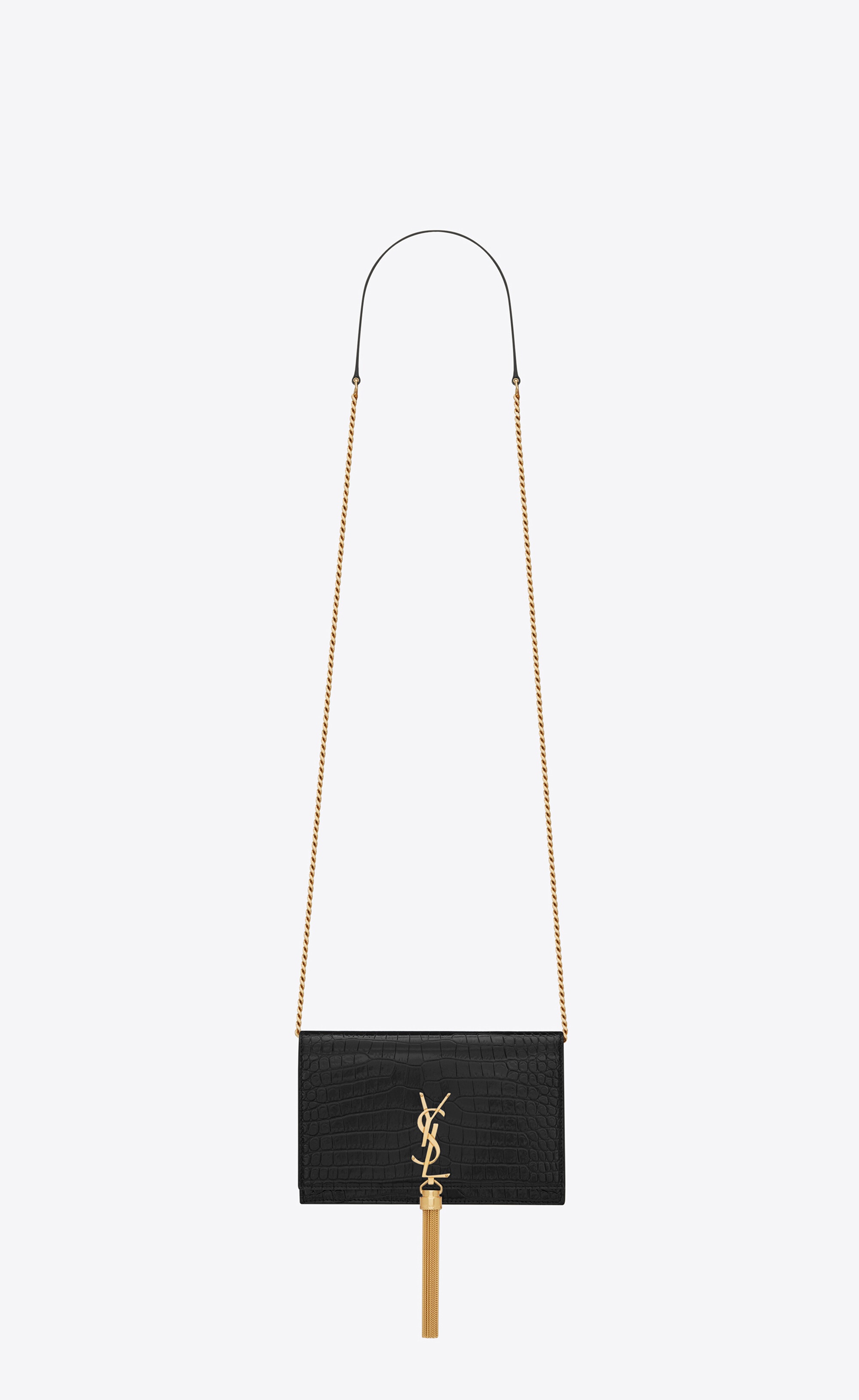 kate chain wallet with tassel in crocodile-embossed shiny leather