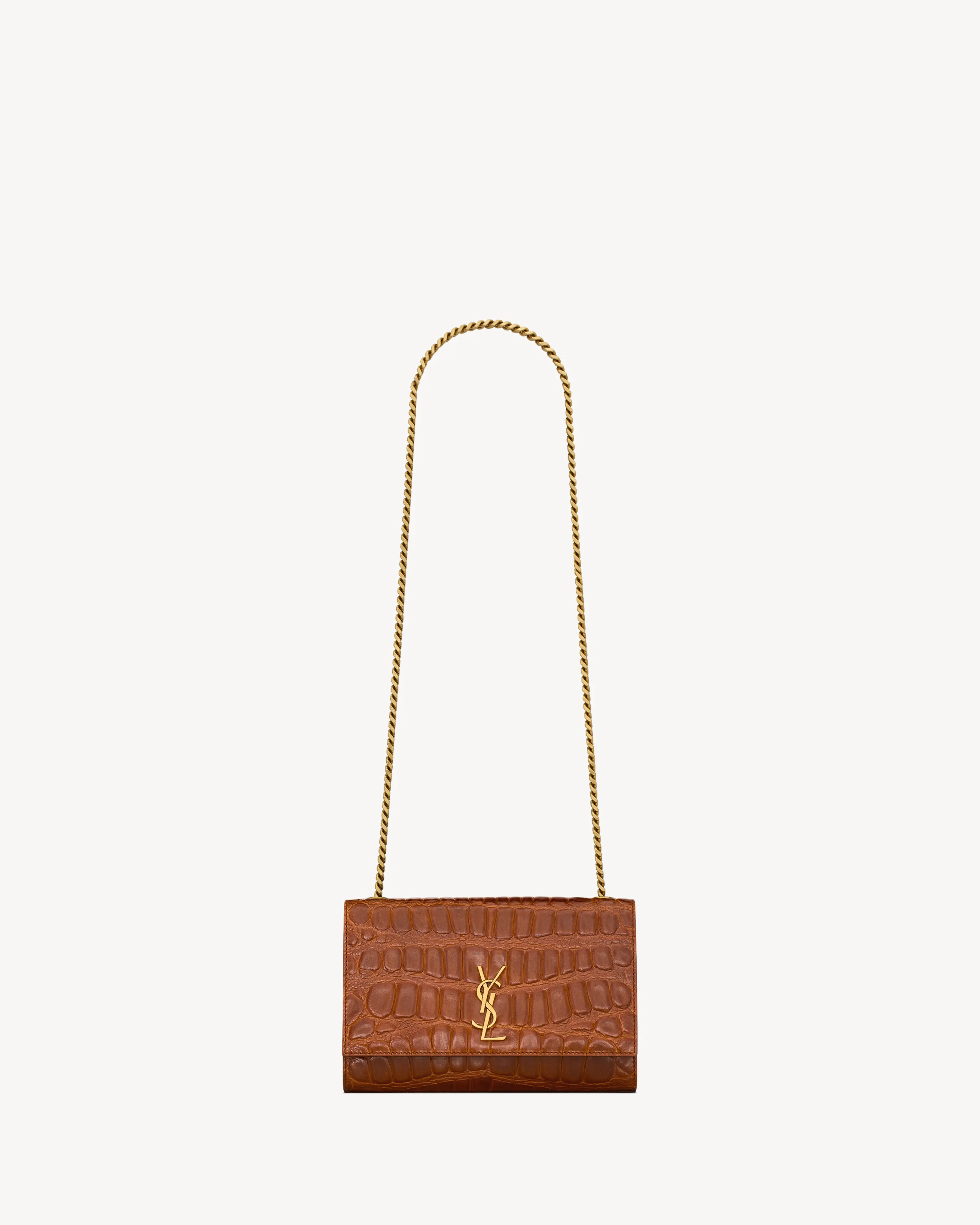 THE KATE IN CROCODILE EMBOSSED LEATHER, DECORATED WITH THE CASSANDRE. THIS MODERN, STRUCTURED BAG FEATURES A CABLE-CHAIN STRAP FOR SHOULDER CARRY. - LEATHER LINING - BRONZE-TONE HARDWARE - MAGNETIC SNAP CLOSURE - ONE FLAT POCKET - DIMENSIONS: 20 X 13 X 5 CM / 7.9" X 5.1" X 2" - STRAP DROP: 40 CM / 15.7" - LAMBSKIN BRASS - STYLE ID 8515042US0W2547 - MADE IN ITALY