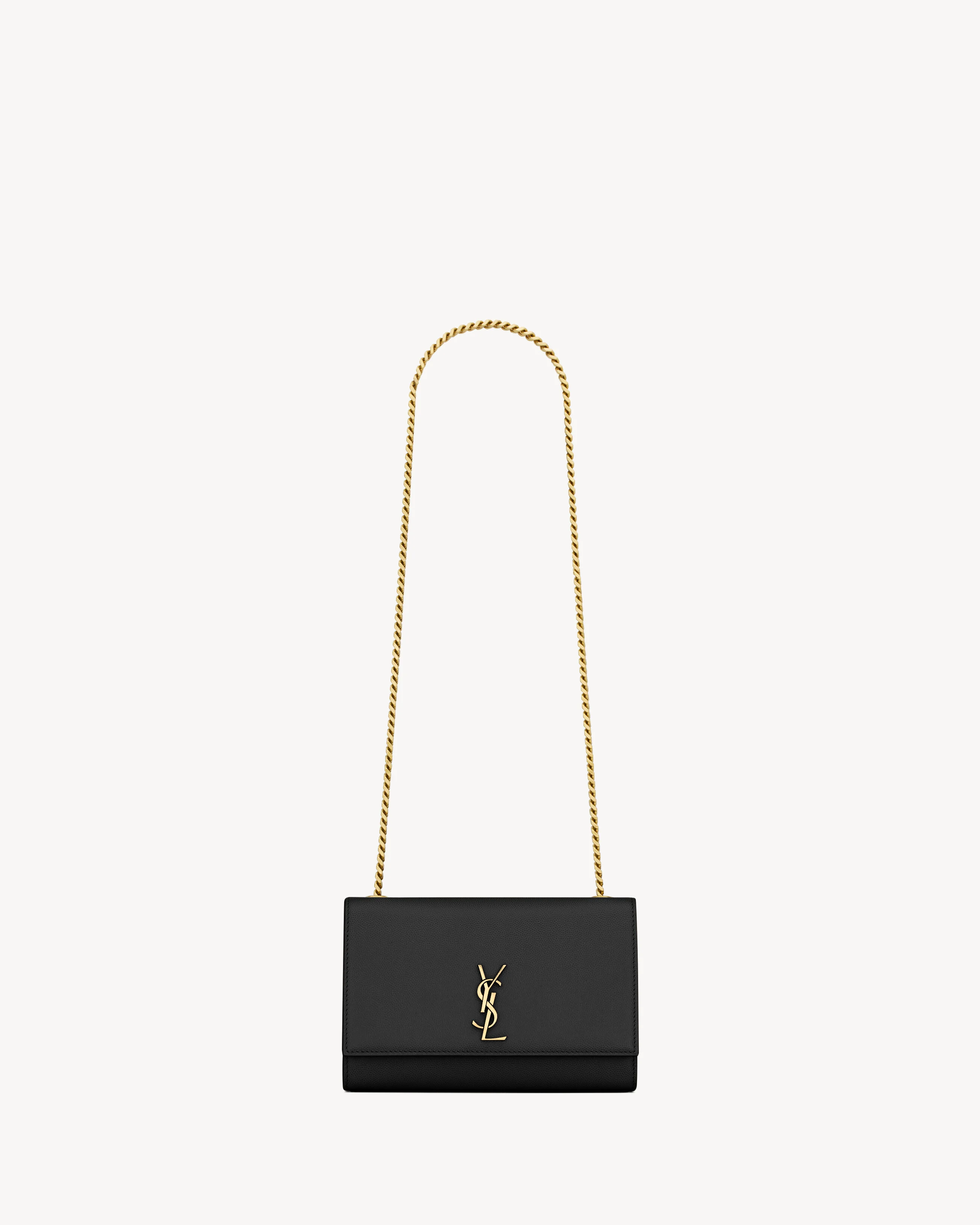 THE KATE IN GRAIN DE POUDRE EMBOSSED LEATHER, DECORATED WITH THE CASSANDRE. THIS MODERN, STRUCTURED BAG FEATURES A CABLE-CHAIN STRAP FOR SHOULDER CARRY. - LEATHER LINING - BRONZE-TONE HARDWARE - MAGNETIC SNAP CLOSURE - ONE FLAT POCKET - DIMENSIONS: 20 X 13 X 5 CM / 7.9" X 5.1" X 2" - STRAP DROP: 40 CM / 15.7" - CALFSKIN BRASS - STYLE ID 851504AAGBE1000 - MADE IN ITALY