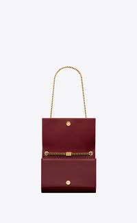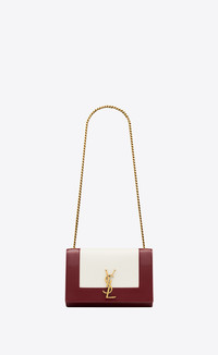 TWO-TONED, LAMBSKIN, NAPPA LEATHER BAG, WITH THE CASSANDRE AND ENGRAVED CURB-LINK CHAIN SAINT LAURENT. - LAMBSKIN - GROSGRAIN LINING - LIGHT BRONZE BRASS HARDWARE - MAGNETIC SNAP TAB - ONE INTERIOR SLOT POCKET - DIMENSIONS: 7.8 X 5.1 X 2.3 INCHES - CHAIN LENGTH: 13.3 INCHES - STYLE ID 813086324 - MADE IN ITALY