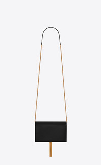 WALLET WITH FLAP MADE WITH METAL-FREE TANNED LEATHER, DECORATED WITH YSL INITIALS, FEATURING A TASSEL AND LEATHER-REINFORCED REMOVABLE SHOULDER STRAP CHAIN. - 100% CALFSKIN LEATHER - CHROME FREE AND METAL FREE TANNED LEATHER - DIMENSIONS: 19 X 12,5 X 4 CM / 7.4 X 4.9 X 1.5 INCHES - SHOULDER STRAP DROP: 60 CM - GOLD-TONED METAL HARDWARE - SNAP FASTENING - SIX CARD SLOTS - ONE BILL SLOT - ONE CENTRAL COMPARTMENT - ONE ZIPPERED COIN PURSE - STYLE ID 812882421 - MADE IN ITALY