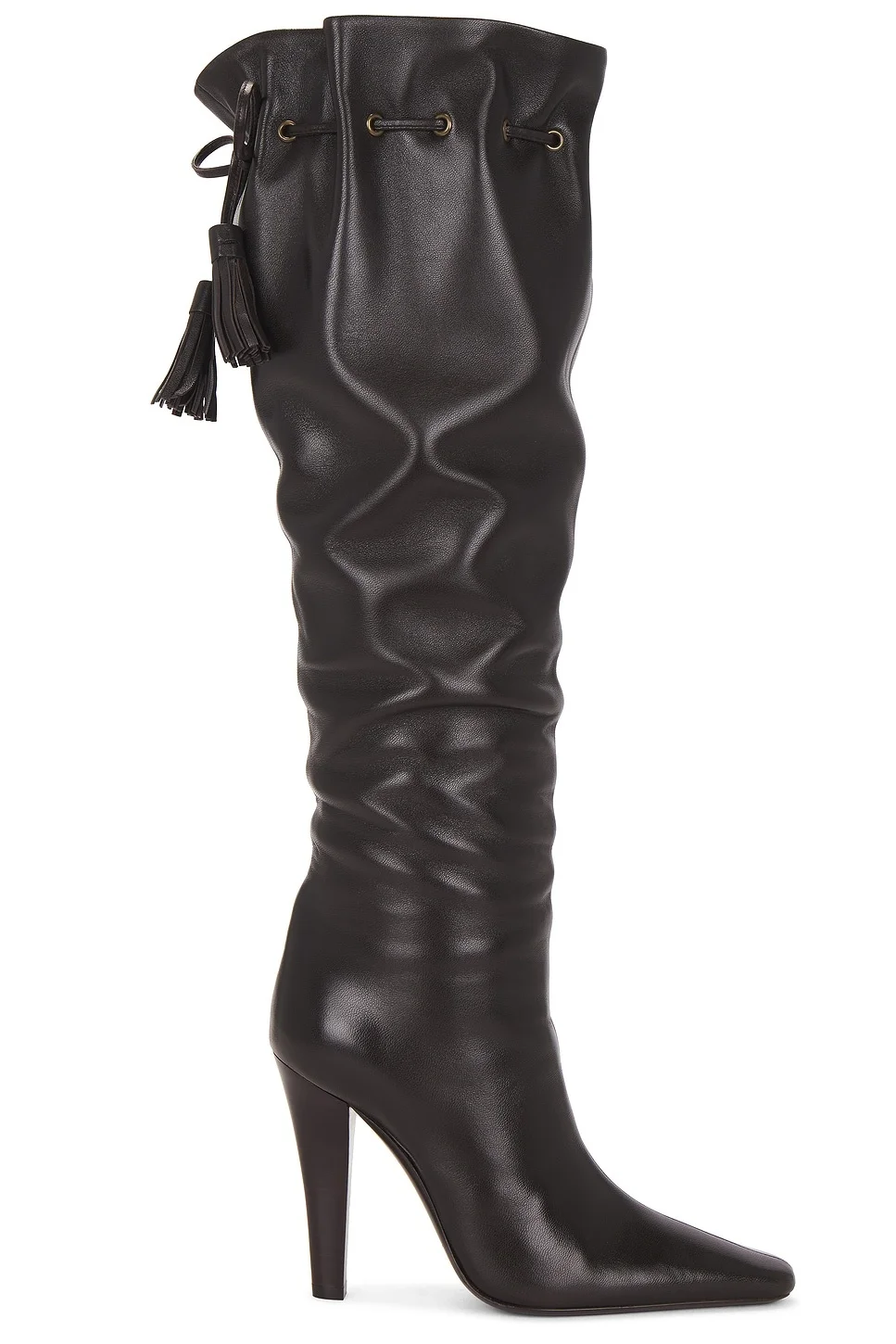 Details - Nappa upper with leather sole - Made in Italy - Drawstring upper - Leather footbed and lining - Pointed square toe with stiletto heel - Approx 110mm/ 4.3 inch heel - Approx 445mm/ 17.5 inch shaft - Shaft measures approx 58 cm in circumference - This item is not available to ship to Indonesia - Our Style No. SLAU-WZ1400 - Manufacturer Style No. 818204-AADF0-2245