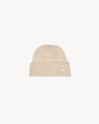 KNITTED BEANIE WITH A RIB-KNIT FOLDED CUFF MADE WITH RESPONSIBLE CASHMERE FROM CERTIFIED AND SUSTAINABLY MANAGED FARMS. - LEATHER TAG EMBOSSED WITH SAINT LAURENT - 100% CASHMERE - STYLE ID 7194173Y2059100 - MADE IN ITALY