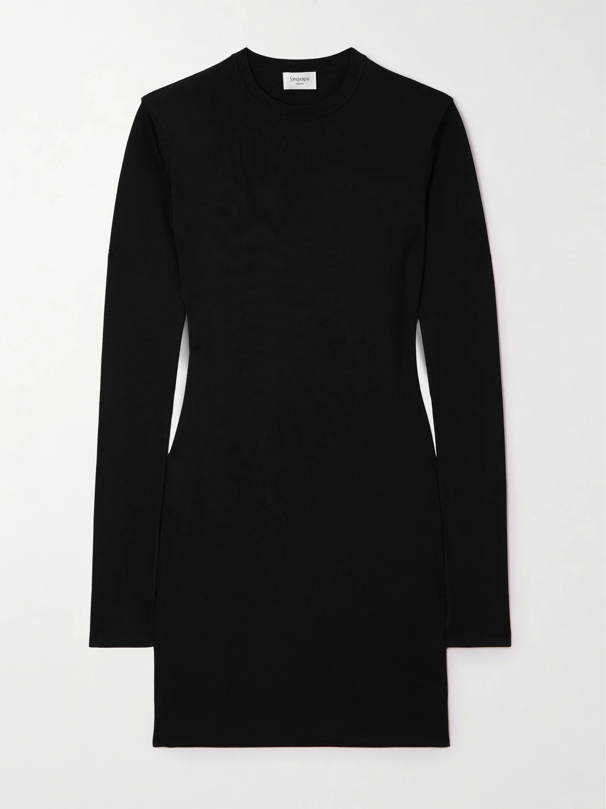 SAINT LAURENT's mini dress offers chic and sophisticated simplicity. Finely knitted to hug your figure, it has a high neckline framed by padded shoulders. Wear yours with sculptural jewelry and kitten heels.