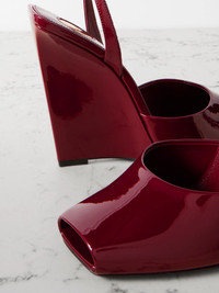 SAINT LAURENT's 'La Scandale' sandals have been crafted in Italy from glossy patent-leather and are set on 110mm wedge heels. The squared-off peep toes are a defining detail in the range, as well as the slim ankle straps. Size & Fit Fits true to size, please refer to SAINT LAURENT size guide below: - EU 36 = UK 3/ US 6/ IT 36/ FR 37 - EU 36.5 = UK 3.5/ US 6.5/ IT 36.5/ FR 37.5 - EU 37 = UK 4/ US 7/ IT 37/ FR 38 - EU 37.5 = UK 4.5/ US 7.5/ IT 37.5/ FR 38.5 - EU 38 = UK 5/ US 8/ IT 38/ FR 39 - EU 38.5 = UK 5.5/ US 8.5/ IT 38.5/ FR 39.5 - EU 39 = UK 6/ US 9/ IT 39/ FR 40 - EU 39.5 = UK 6.5/ US 9.5/ IT 39.5/ FR 40.5 - EU 40 = UK 7/ US 10/ IT 40/ FR 41 - EU 40.5 = UK 7.5/ US 10.5/ IT 40.5/ FR 41.5 - EU 41 = UK 8/ US 11/ IT 41/ FR 42 - EU 41.5 = UK 8.5/ US 11.5/ IT 41.5/ FR 42.5 - EU 42 = UK 9/ US 12/ IT 42/ FR 43 Details & Care - Heel measures approximately 110mm/ 4.5 inches - Burgundy patent-leather (Calf) - Buckle fastening ankle strap