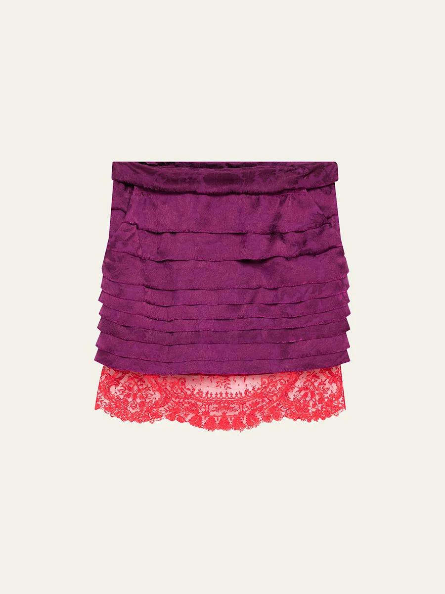 Lace-Hem Ruffled Jacquard Mini Skirt