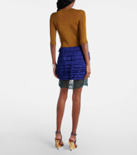 Layered lace-trimmed jacquard miniskirt